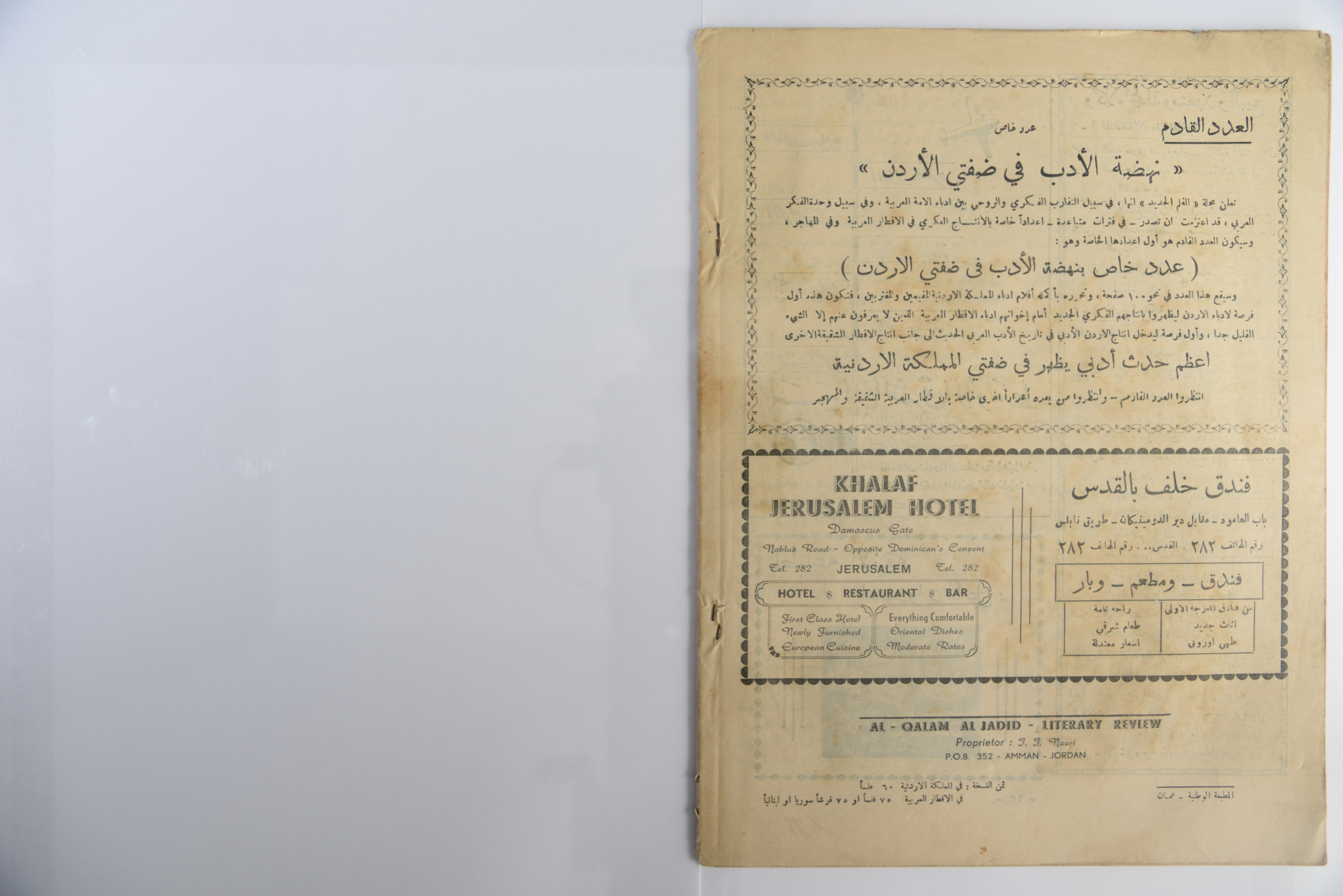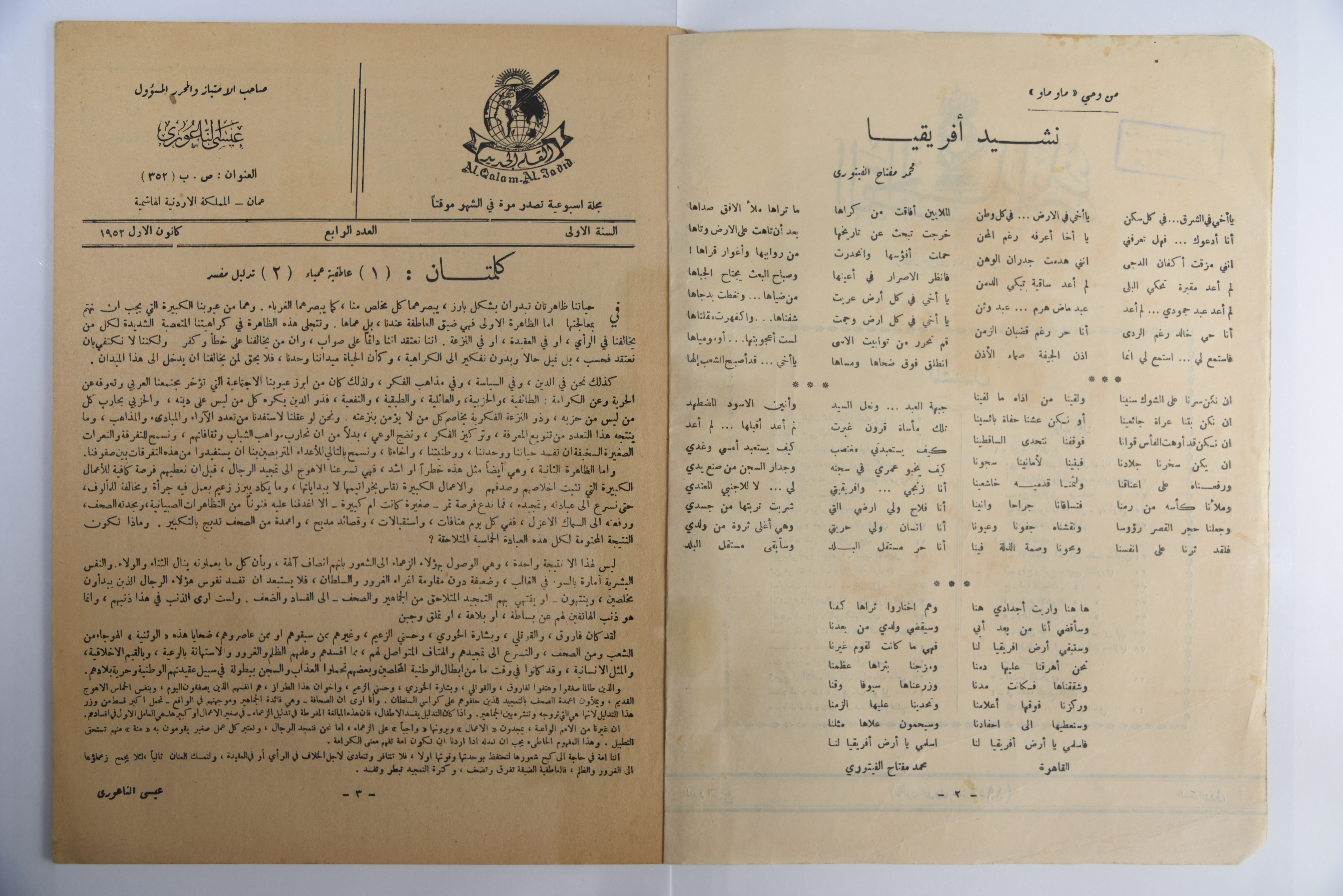 Published in December 1952, this document includes the 4th issue of Al Qalam al Jadid Magazine.