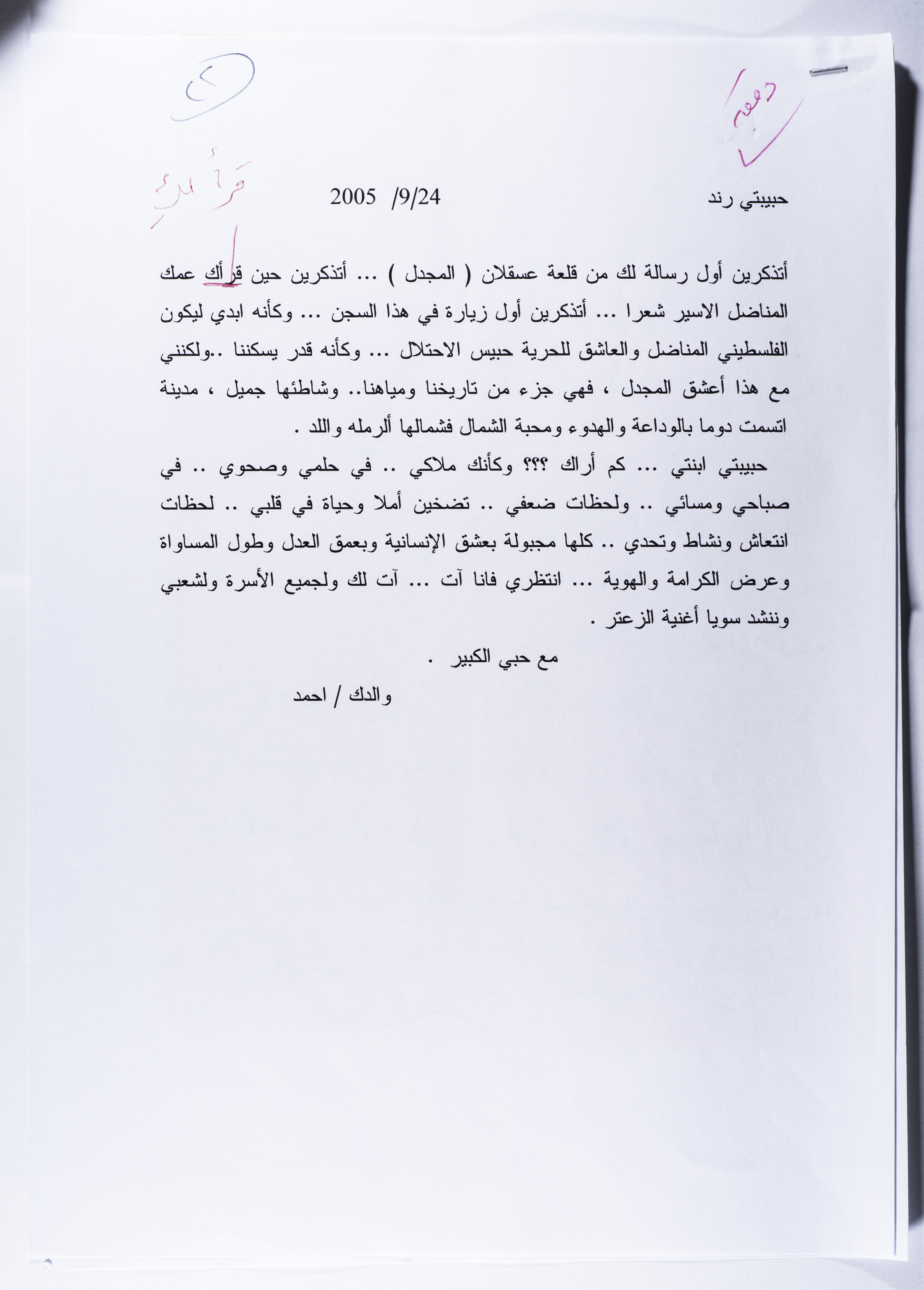 A Letter from Ahmad al-Maslamani to his Daughter Rand, 2005