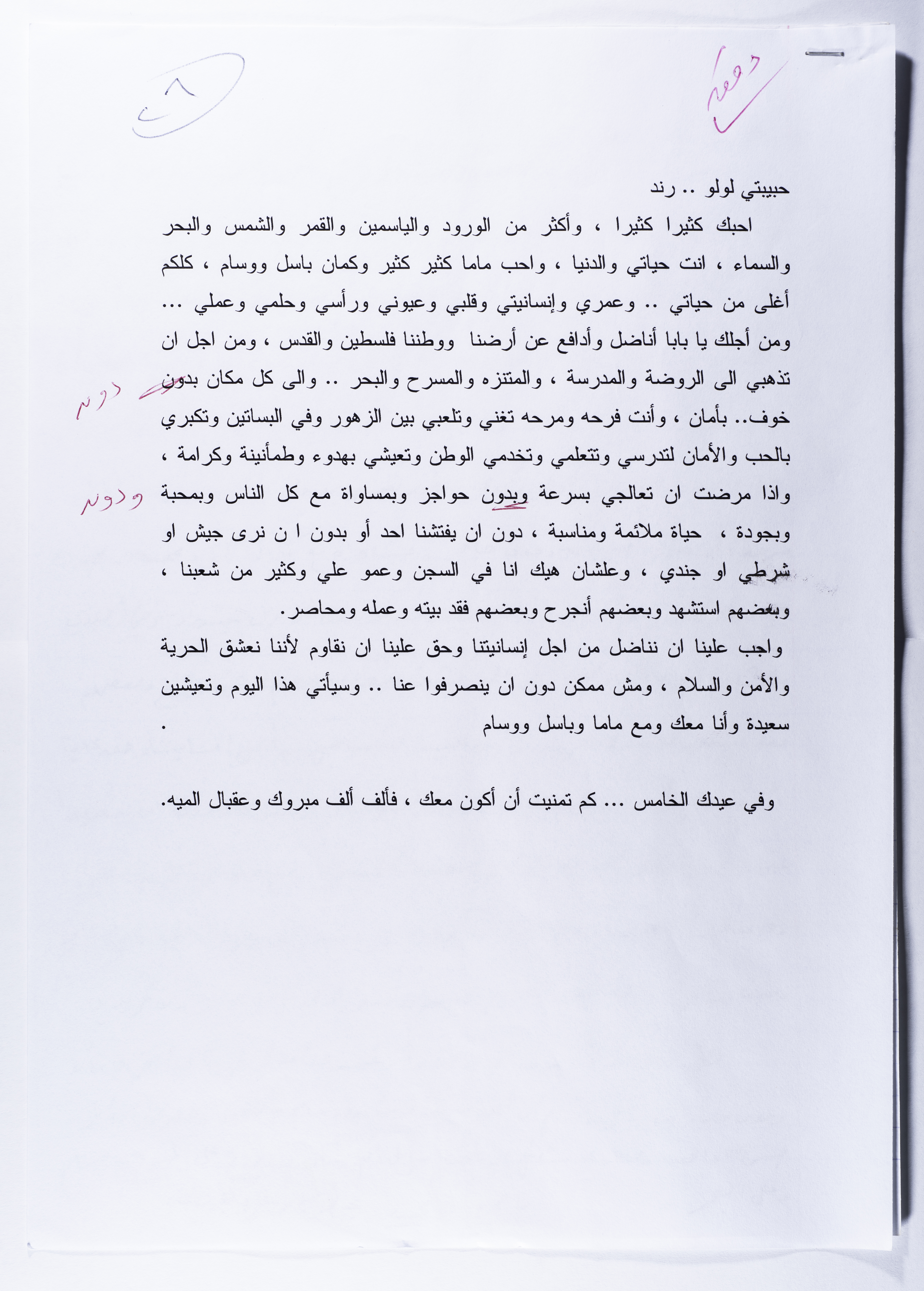 A Letter from Ahmad al-Maslamani to his Daughter Rand on her 5th Birthday