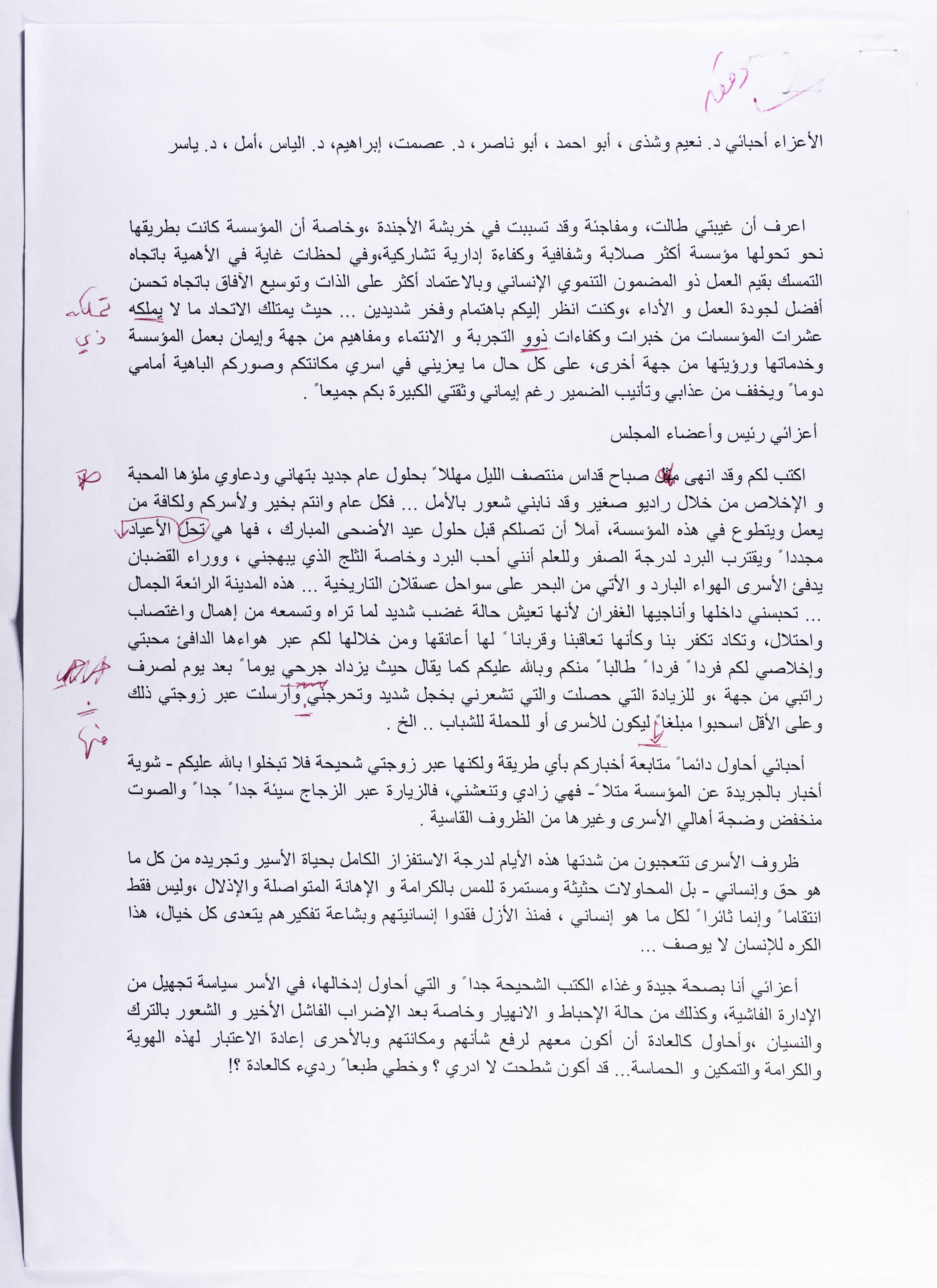 A Letter from Ahmad al-Maslamani to his Colleagues at the Health Work Committees