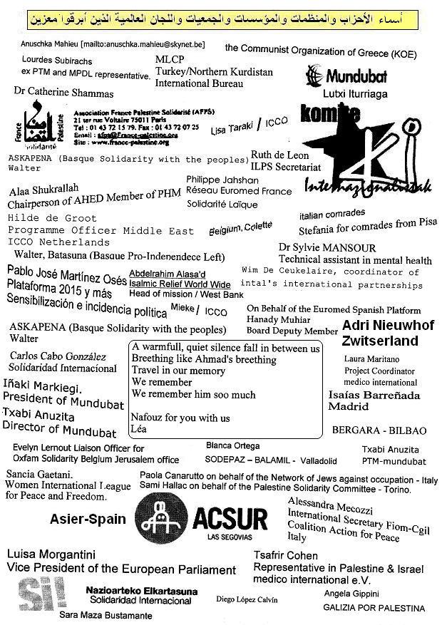 Printed in Arabic, this document features the associations, societies, parties, and international committees that reported the passing of Dr Ahmad al-Maslamani.