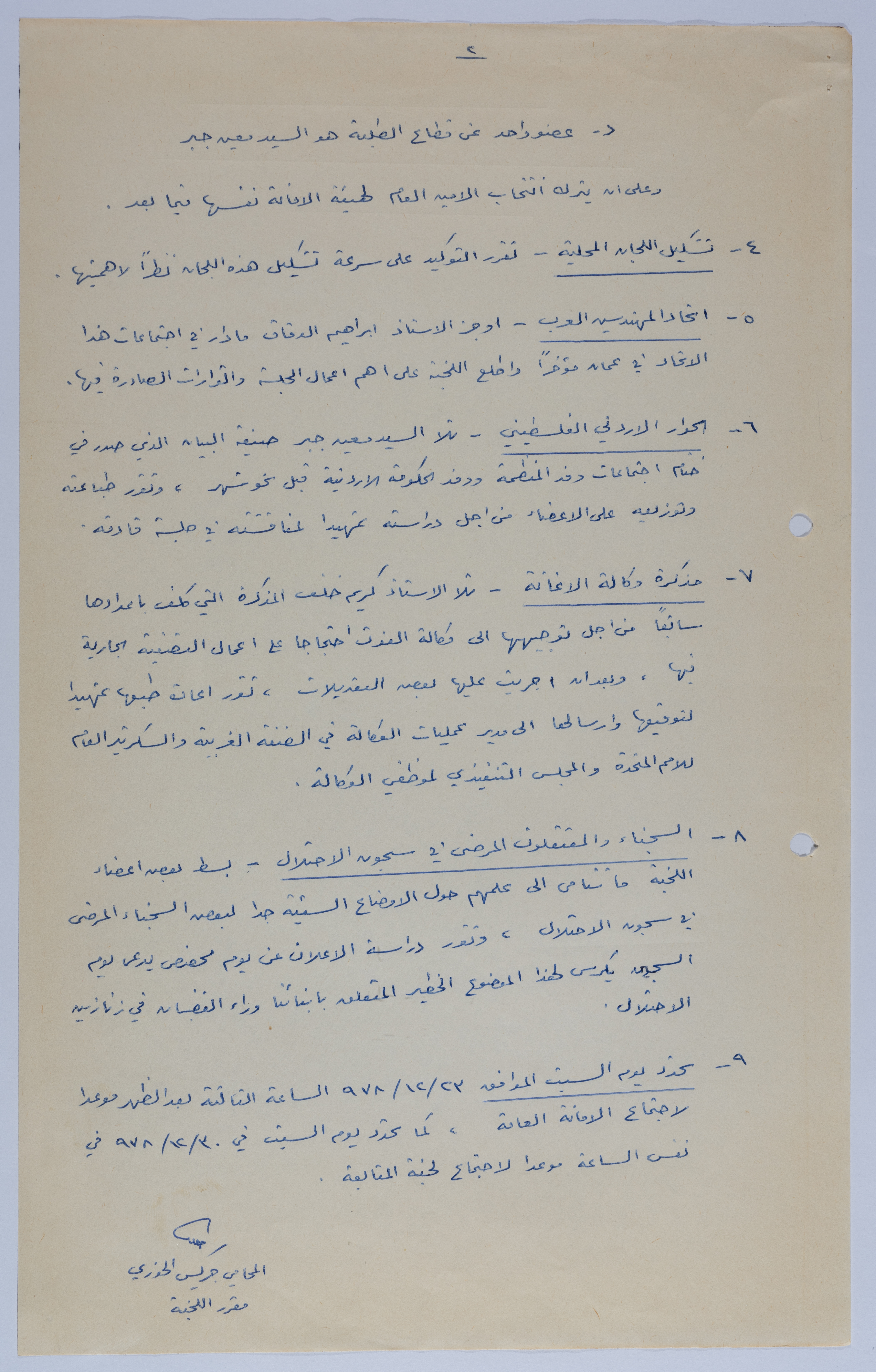 مادة مطبوعة باللغة العربية، وهي عبارة عن وقائج جسلة للجنة التوجيه الوطني عُقدت في القدس عام 1978، بمشاركة رؤساء بلديات في الضفة الغربية وشخصيات أخرى.