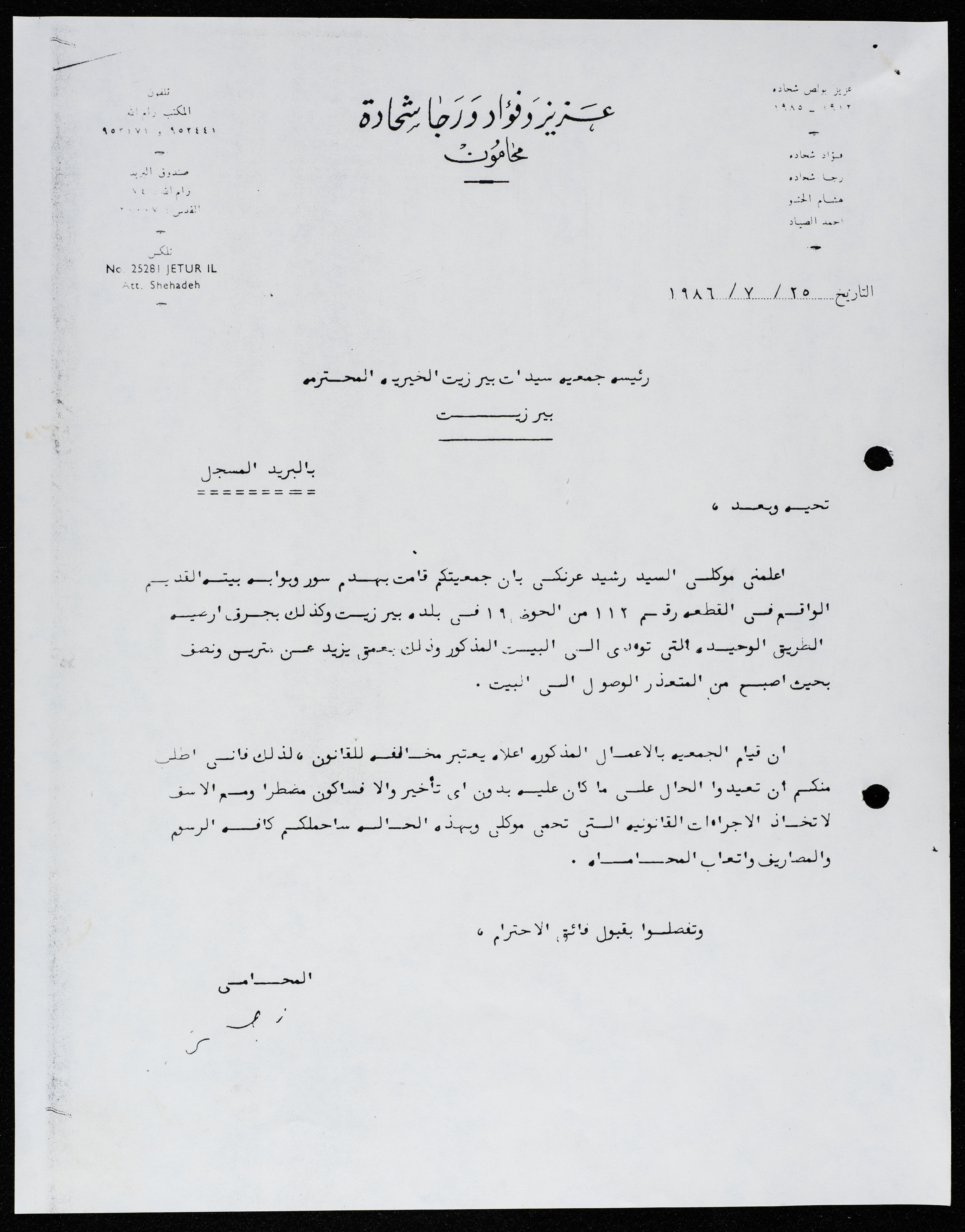 مراسلات جمعية سيدات بيرزيت الخيرية
