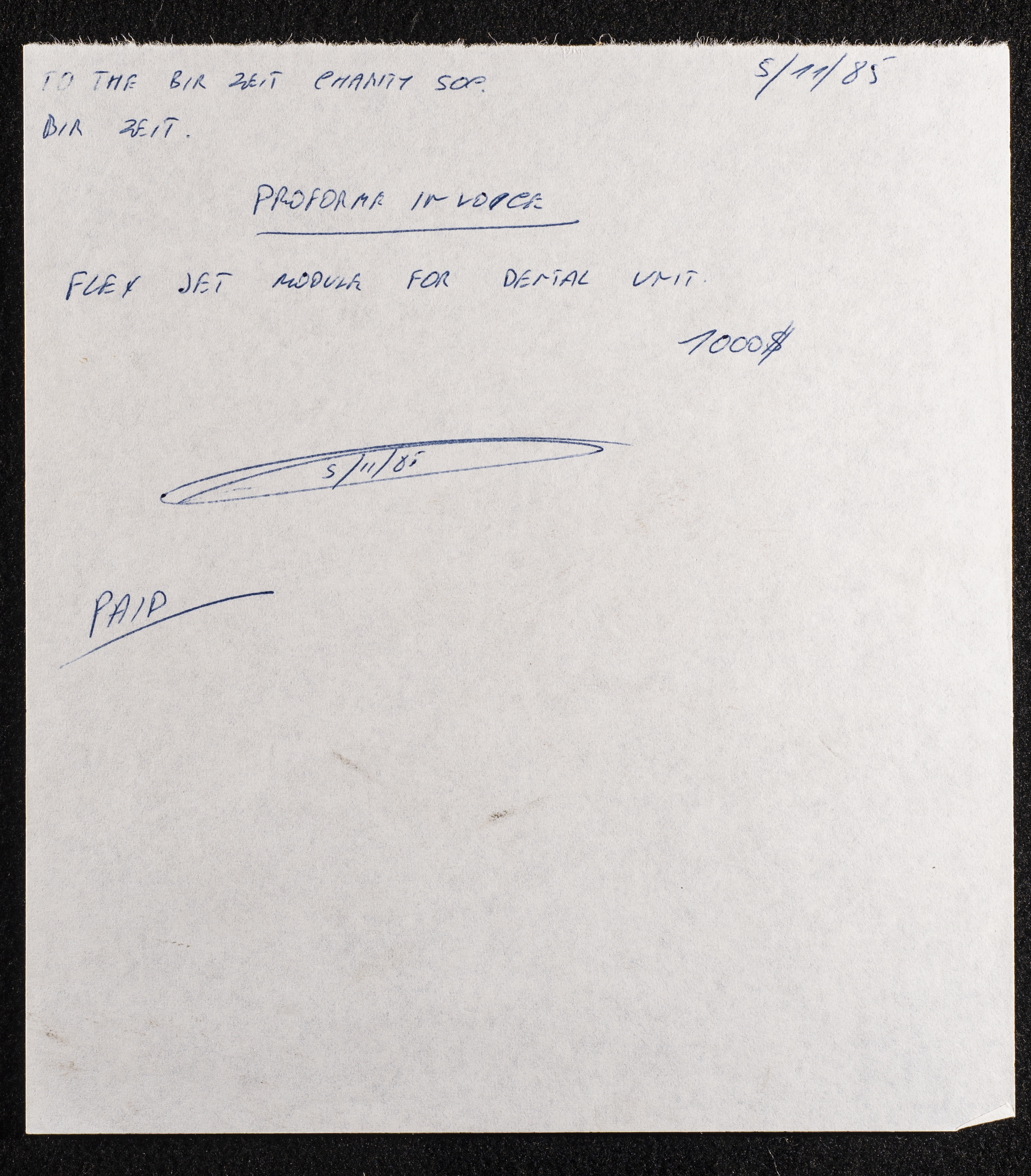 مادة مكتوبة باللغة الإنجليزية وهي عبارة عن رسالة وُجِدت في مجموعة جمعية سيدات بيرزيت الخيرية عام 1985.