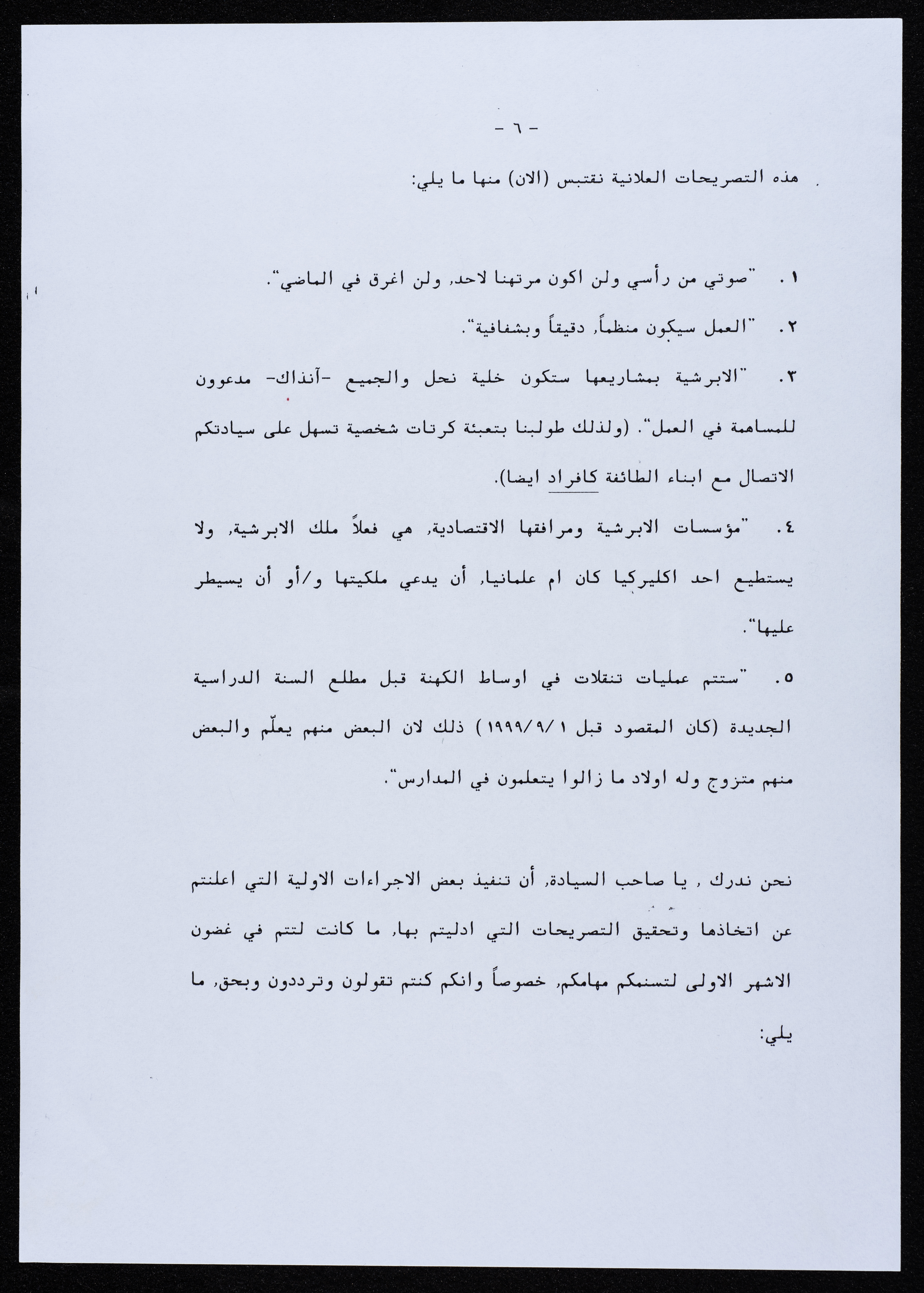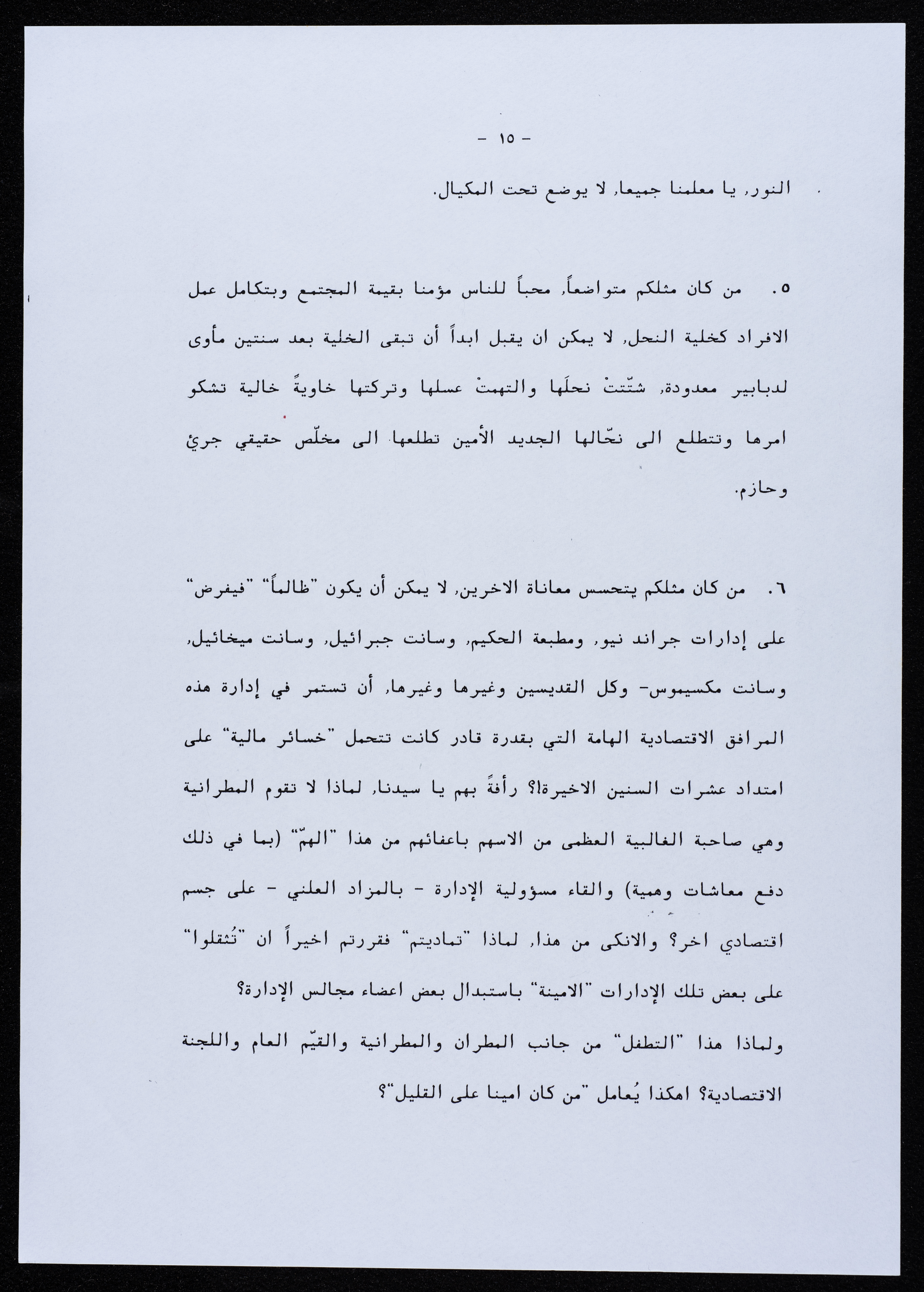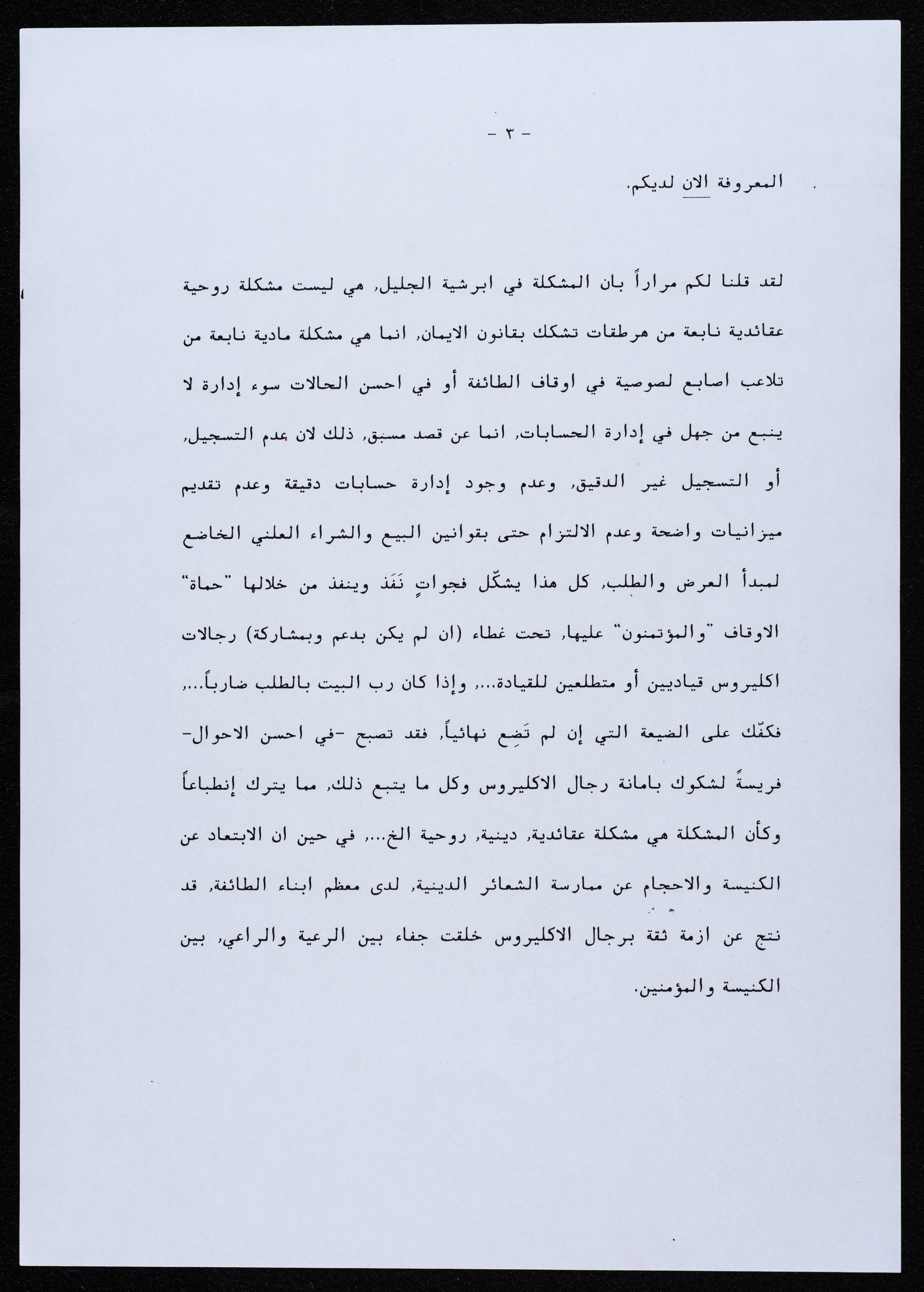 رسالة موجهة من جمعية أبناء أبرشية الجليل إلى المطران بطرس المعلم عام 2000.