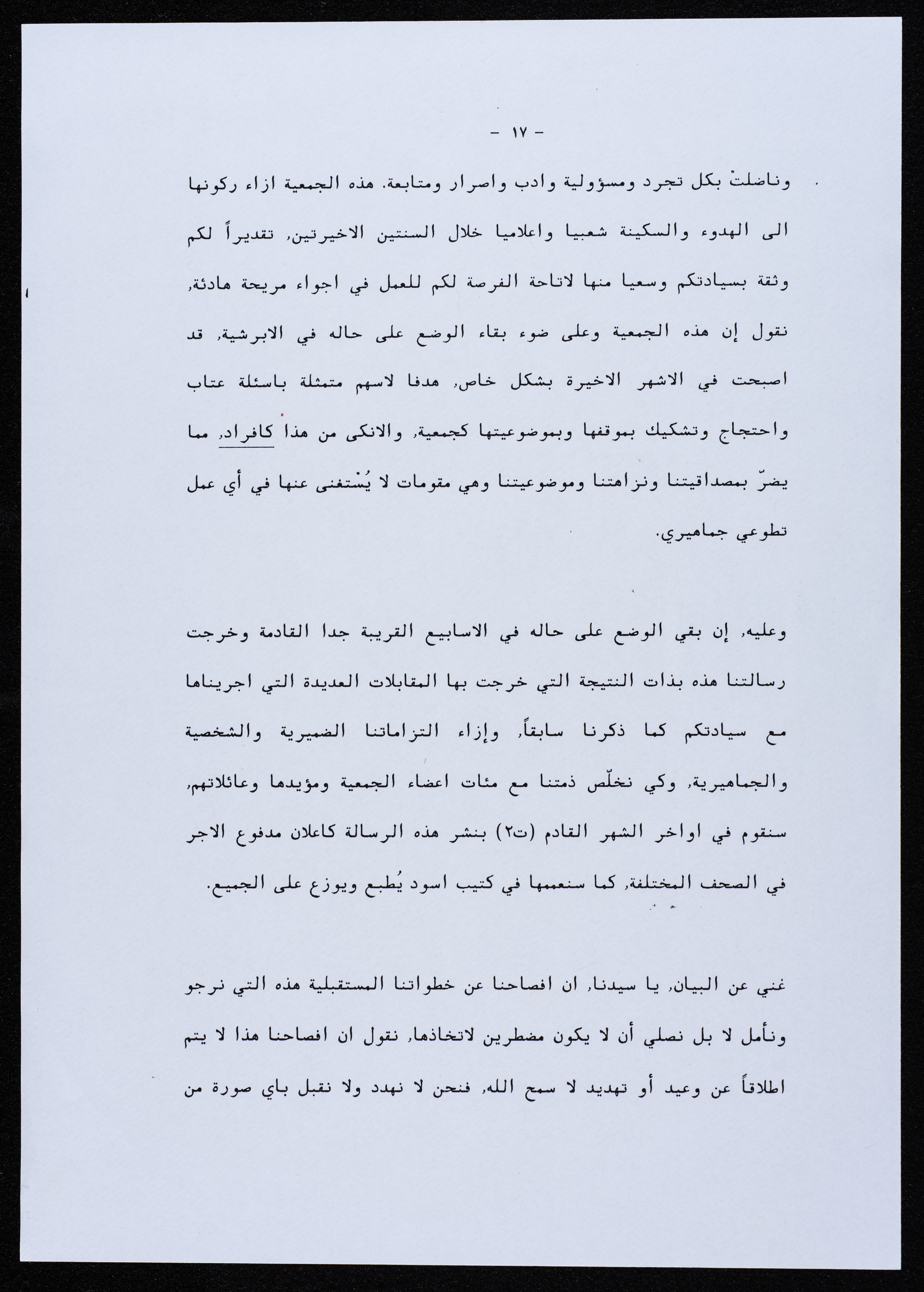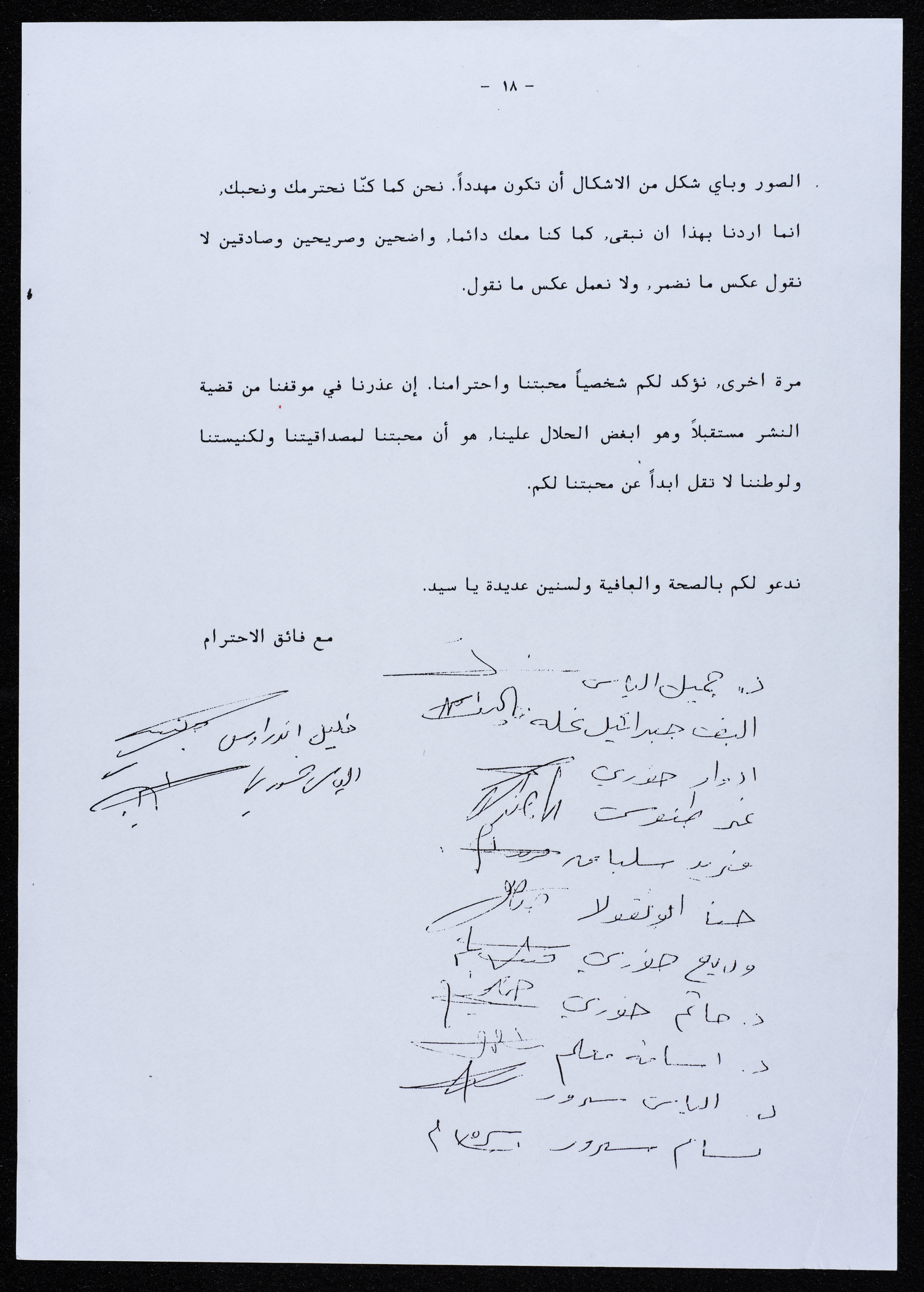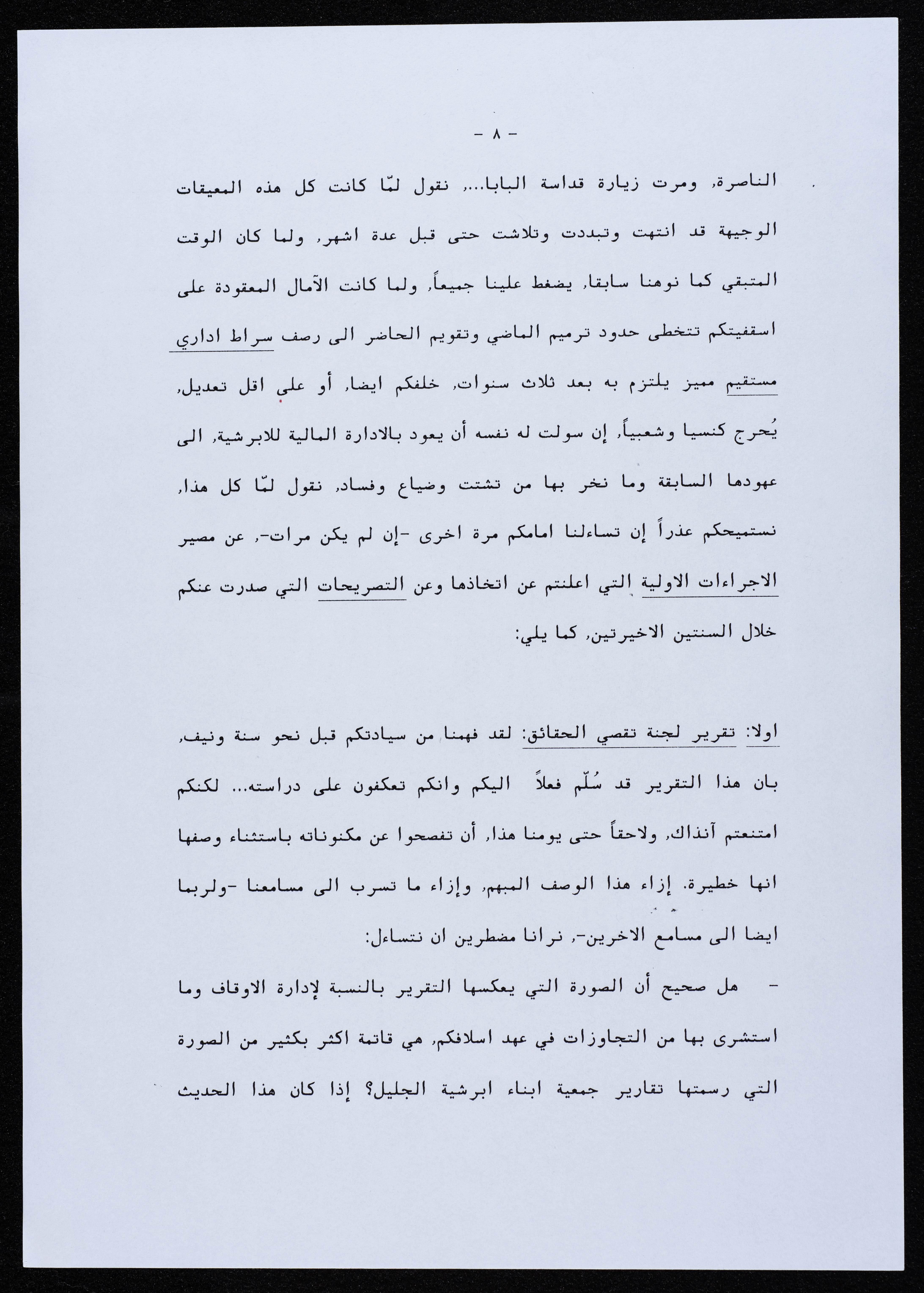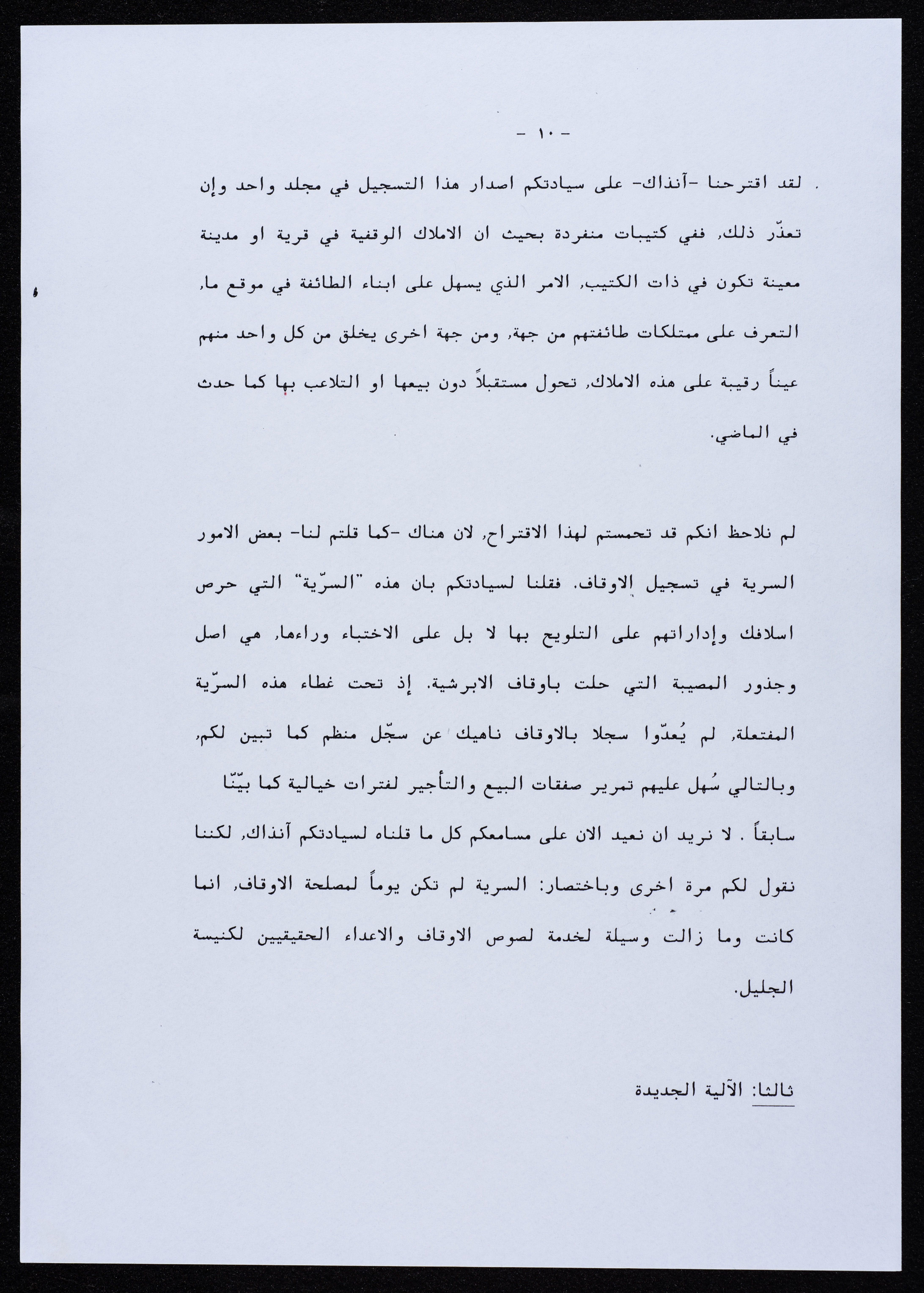 رسالة موجهة من جمعية أبناء أبرشية الجليل إلى المطران بطرس المعلم عام 2000.