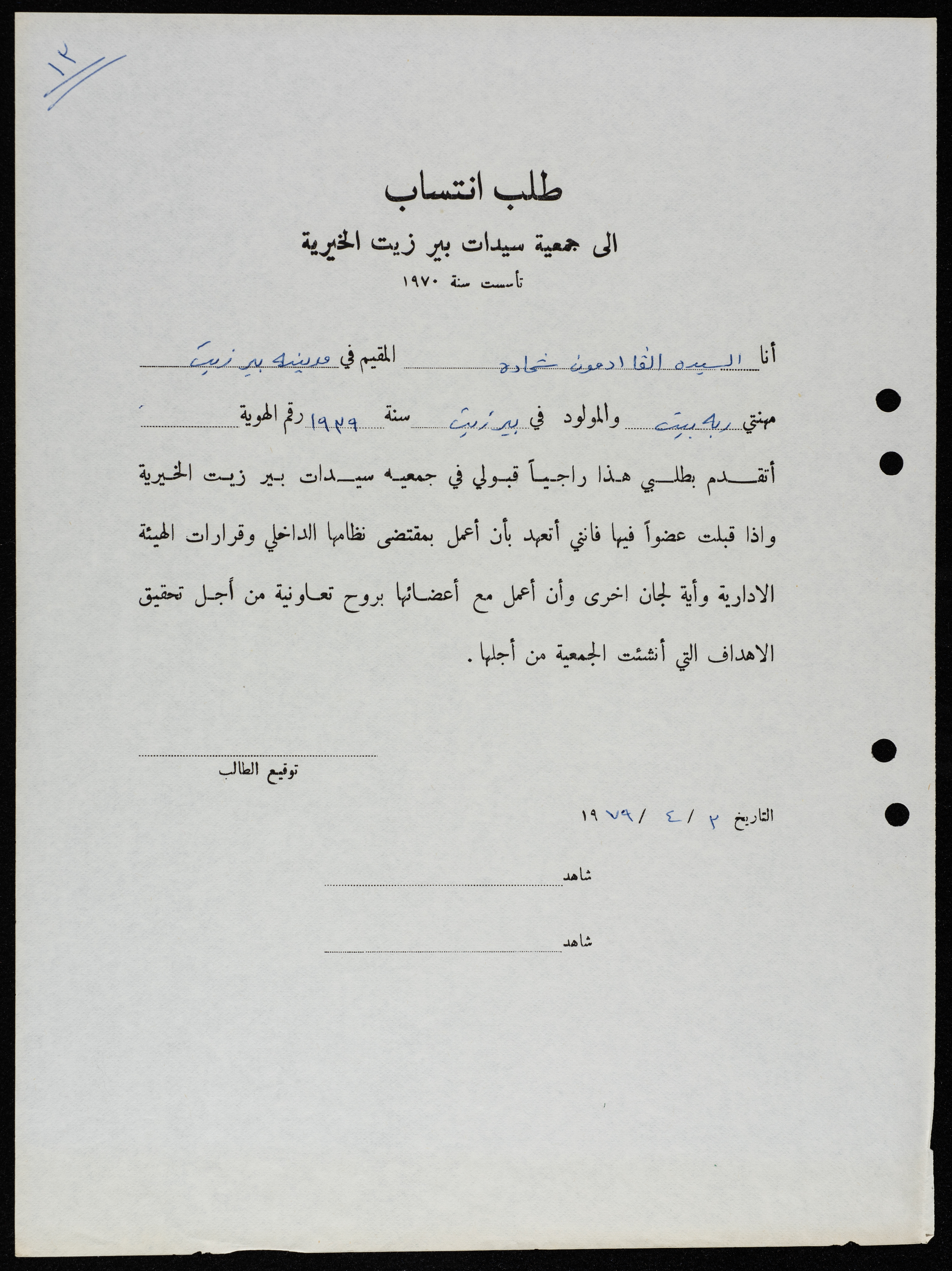 طلبات انتساب وعضوية لجمعية سيدات بيرزيت