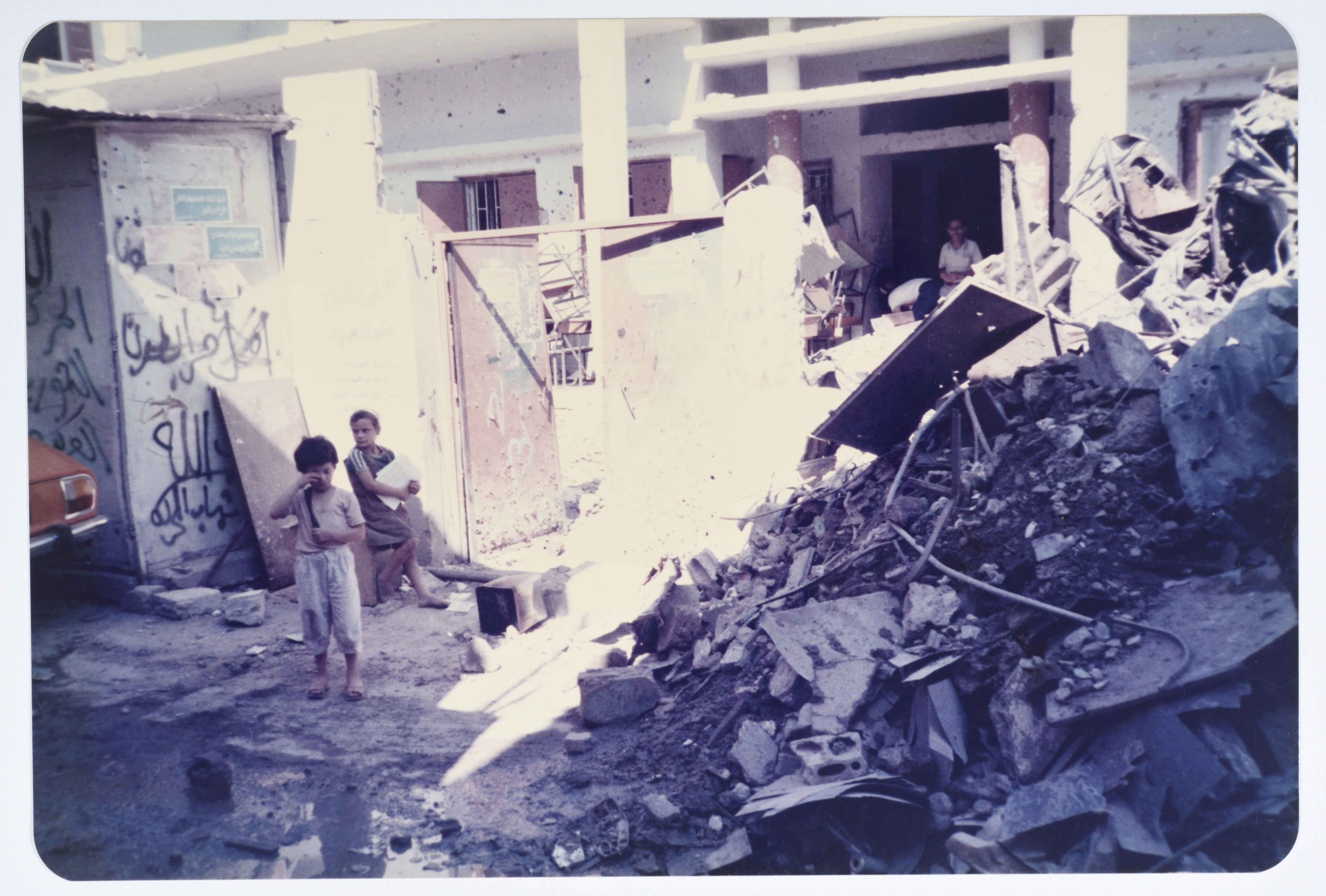مبنى مدرسة مُدمَّر، مخيم شاتيلا، 1986