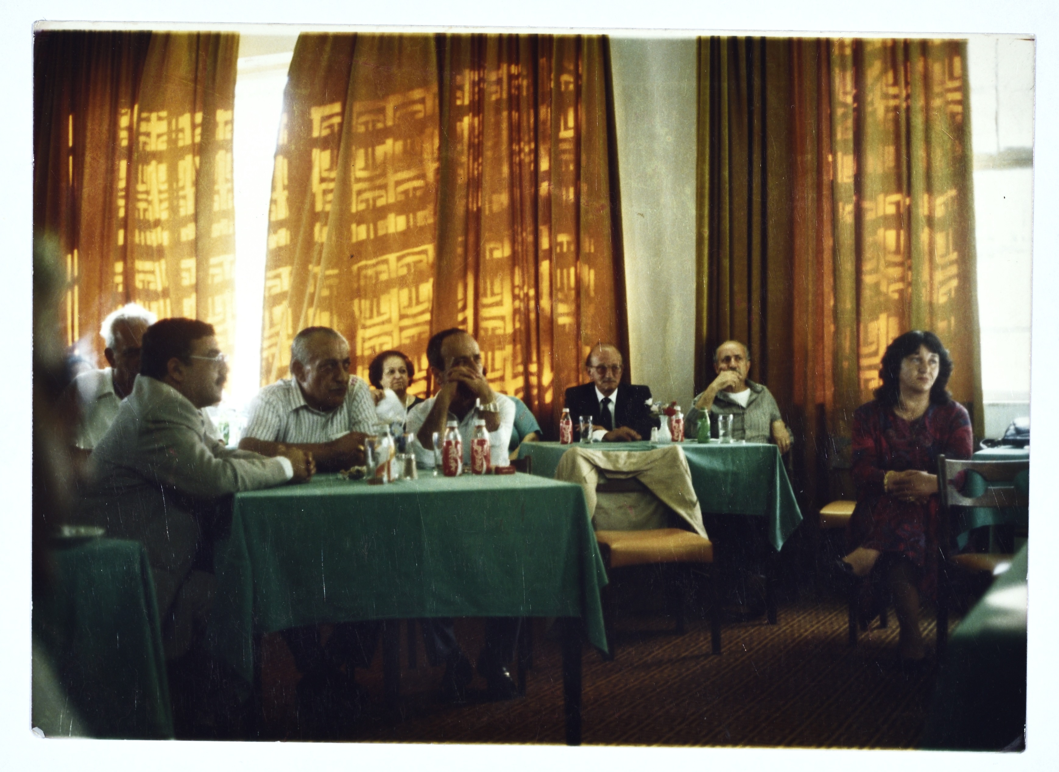 صورة ملونة تظهر فيها نهلة قورة ومجموعة من الاشخاص أثناء مشاركتها في مؤتمر بتاريخ 5 أيلول 1989