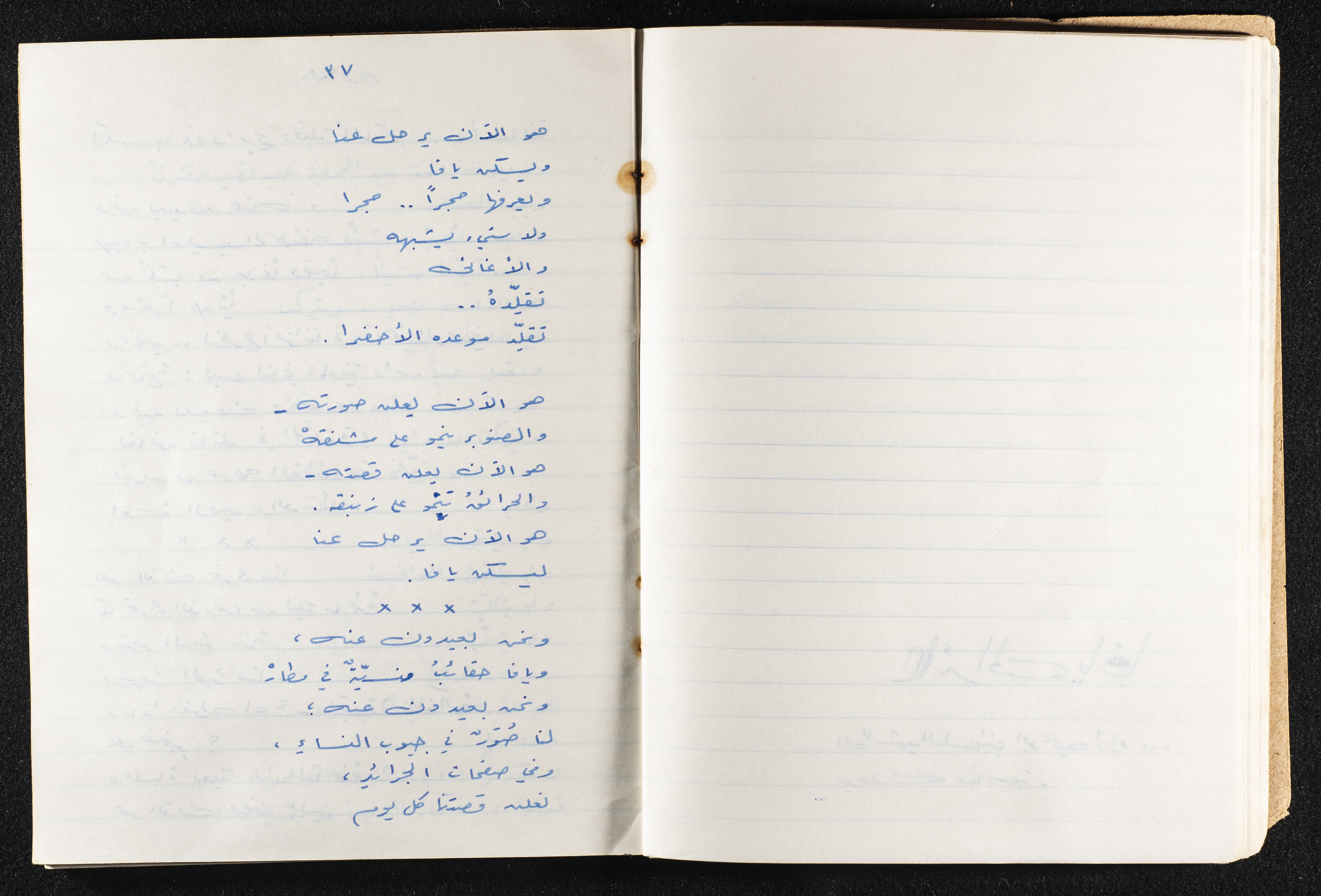 Mahmud Darwish's Diwan "To Love You or not to Love You", handwritten by Mohammad Batrawi when the Israeli Authorities prohibited the publication of books.