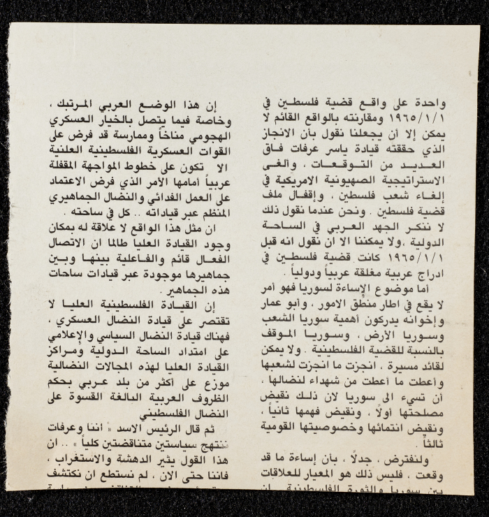 "المجلس الوطني الفلسطيني في دورته السادسة عشرة"، قصاصة من جريدة، 1983