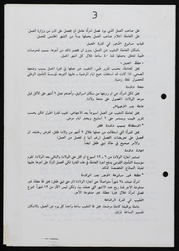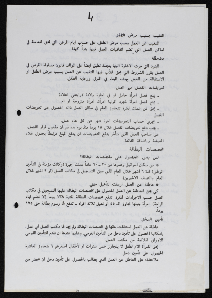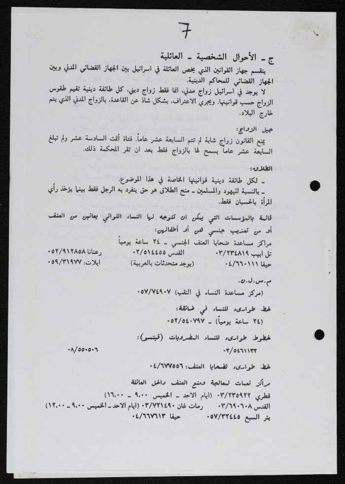Printed in Arabic by the Democratic Front for Peace and Equality, this document shows a guidebook entitled "Women Rights in Israel" in 1991.