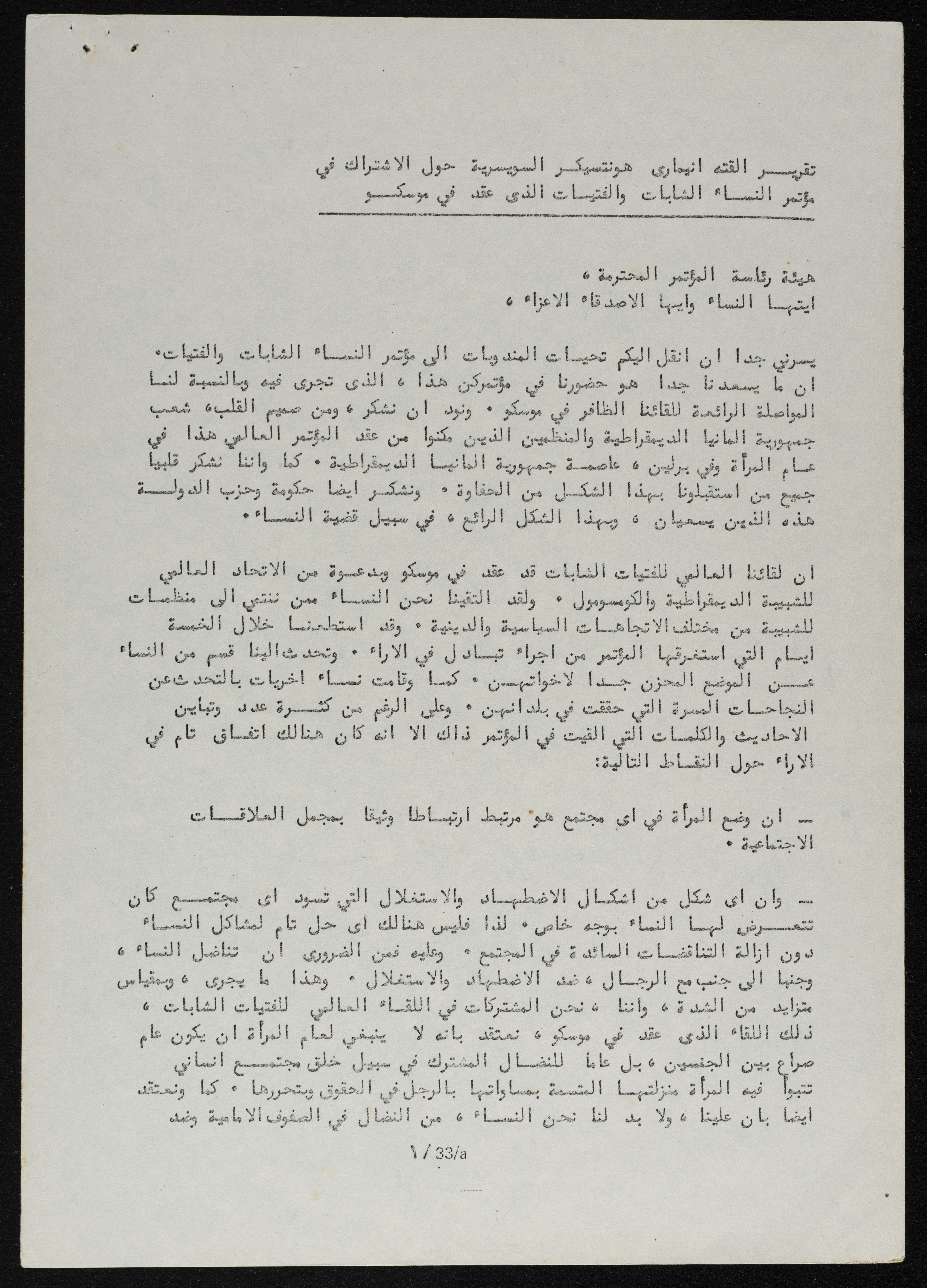 Printed in Arabic, this document shows a greeting letter from Mrs Zerimov, Sri Lankan Prime Minister, to the Conference.
