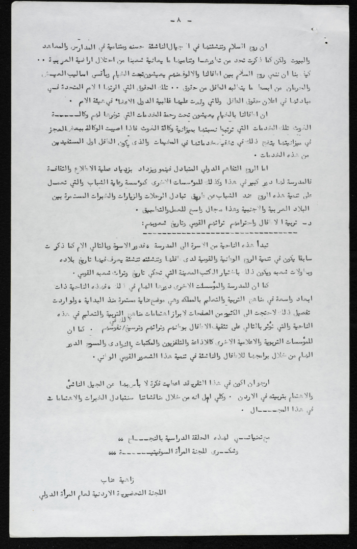 "The Role of Women in Development and the Education of the Younger Generation", a Booklet