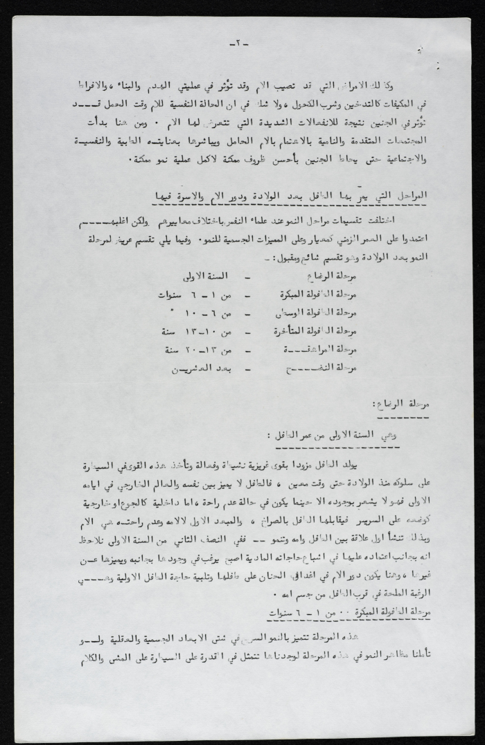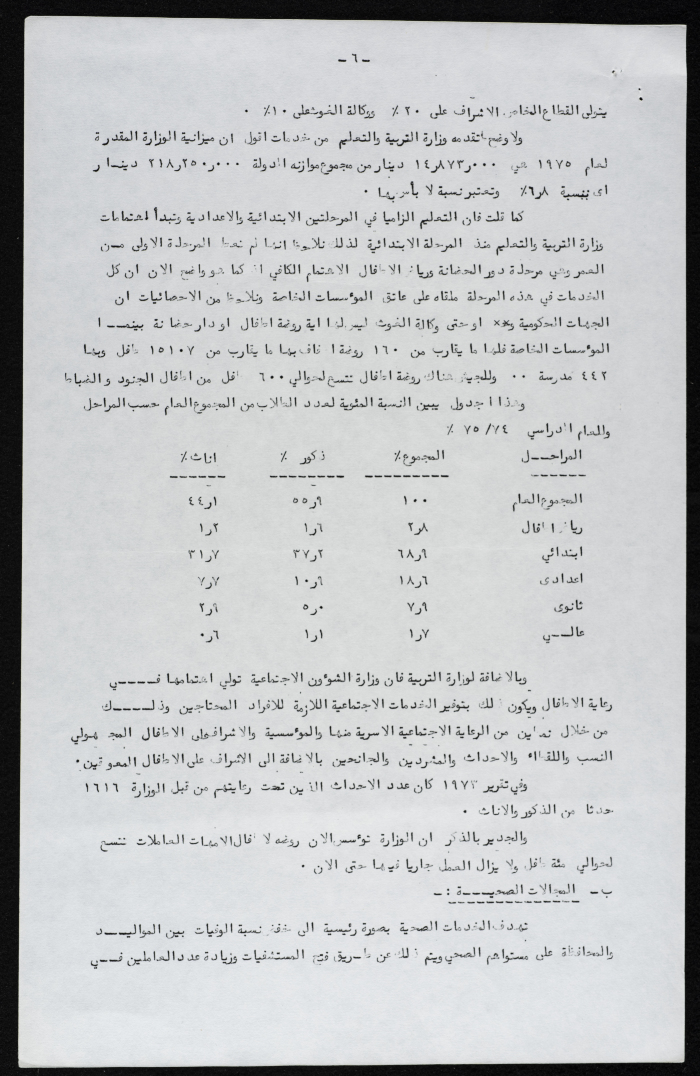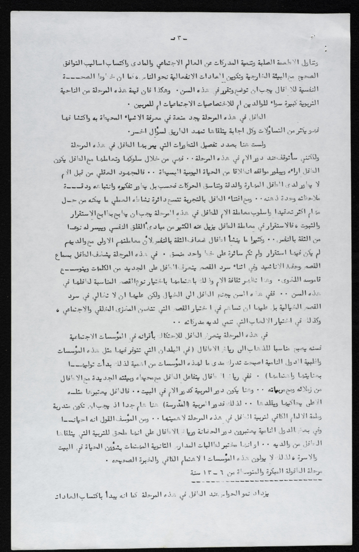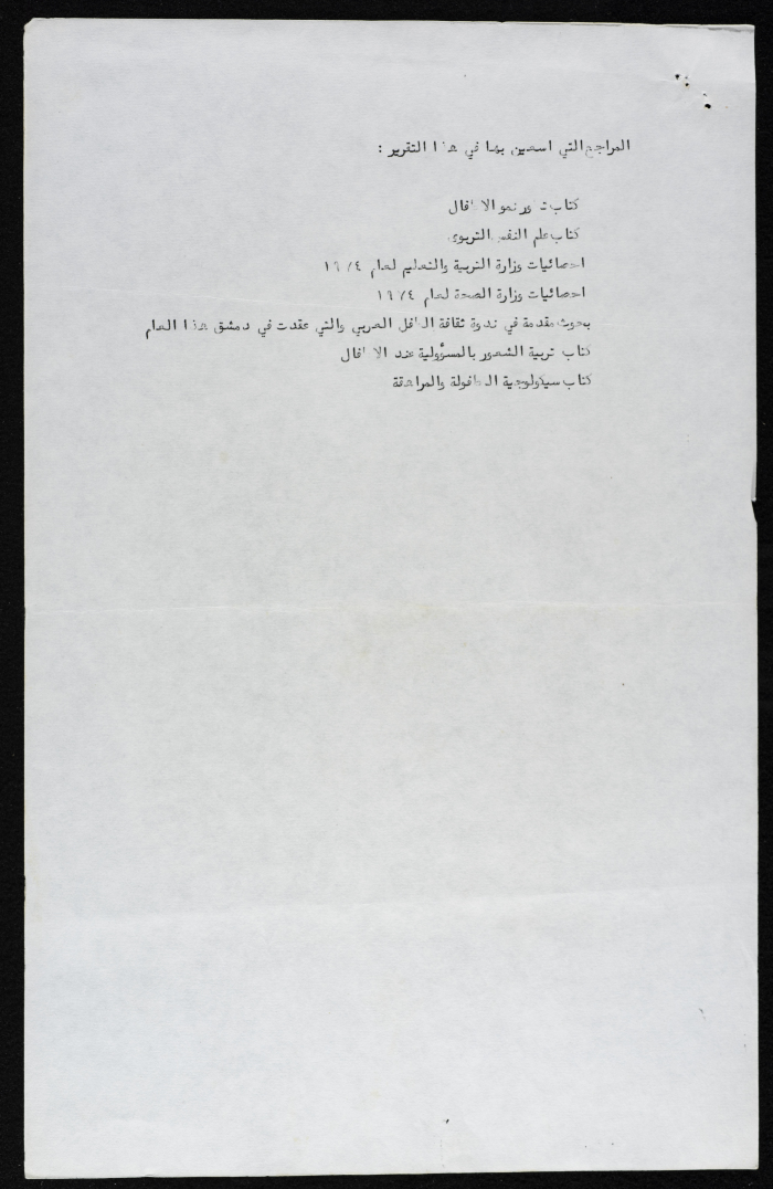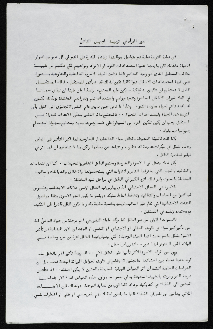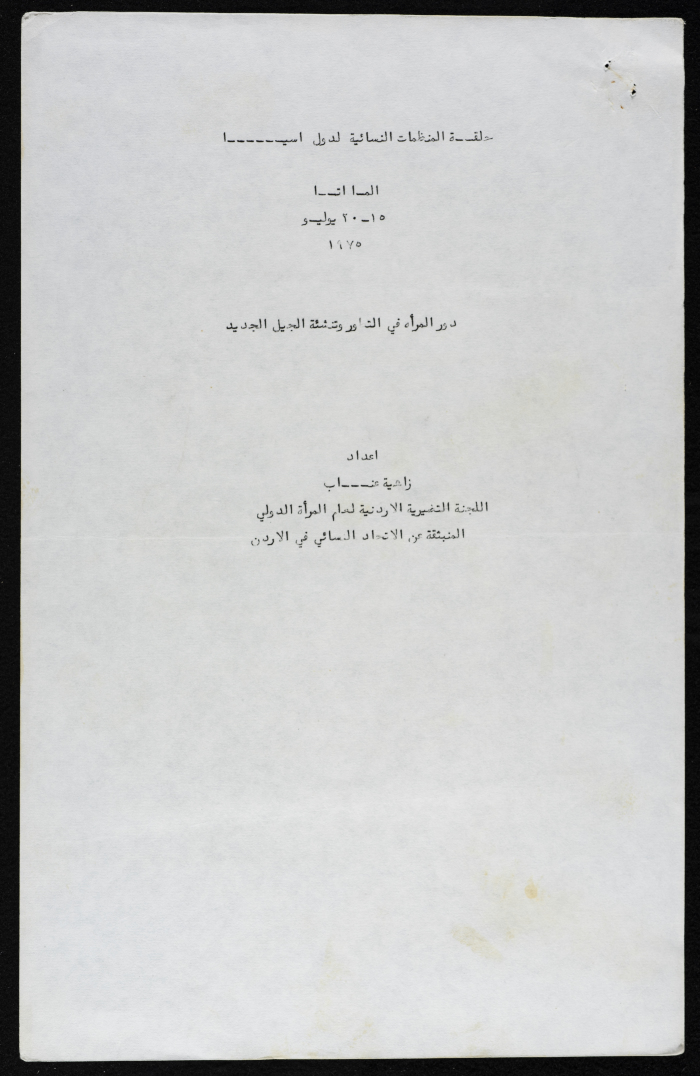 Printed in Arabic, this document shows a booklet entitled "The Role of Women in Development and the Education of the Younger Generation" written by Zahya ʿinnab, 1975.