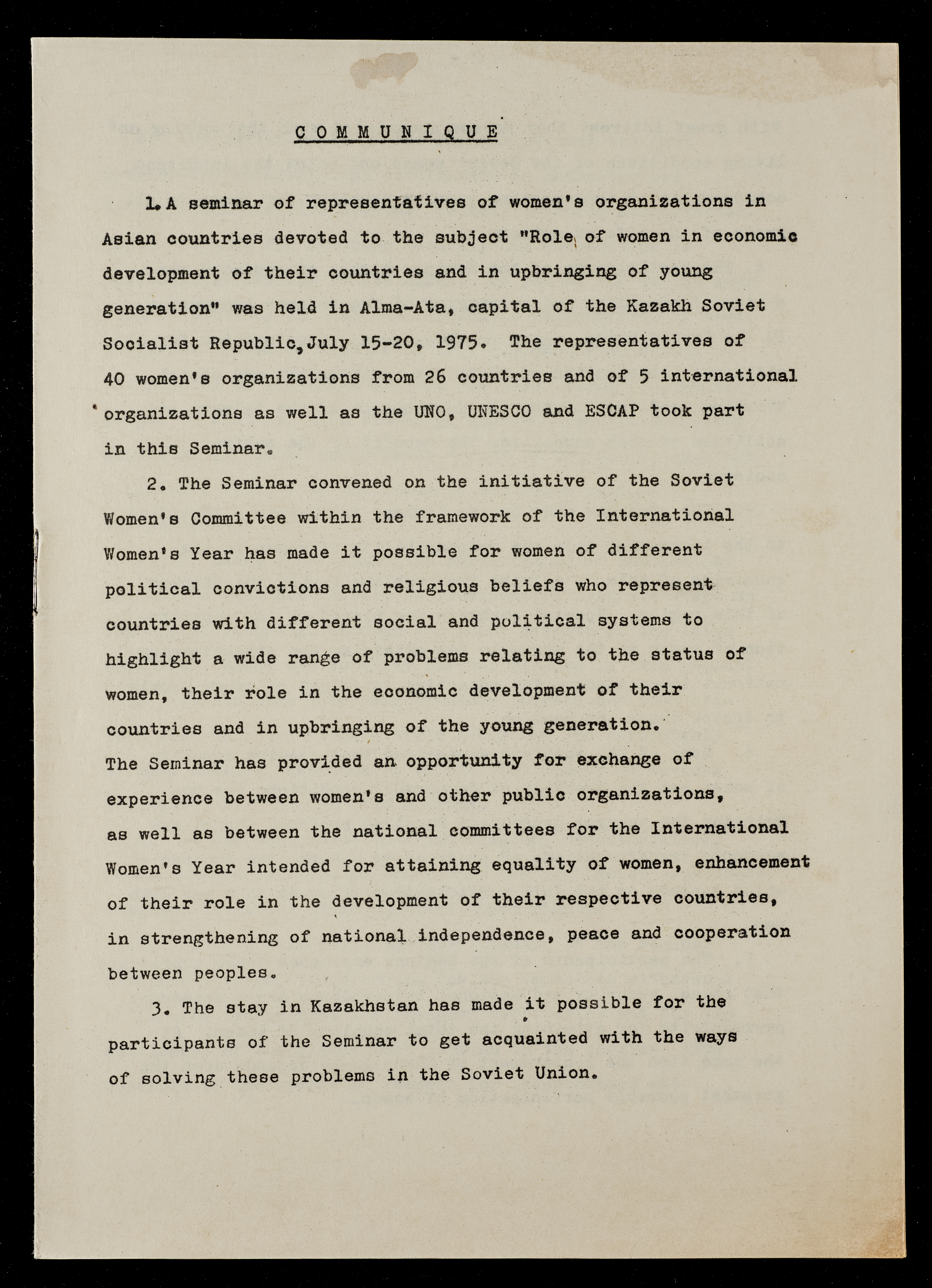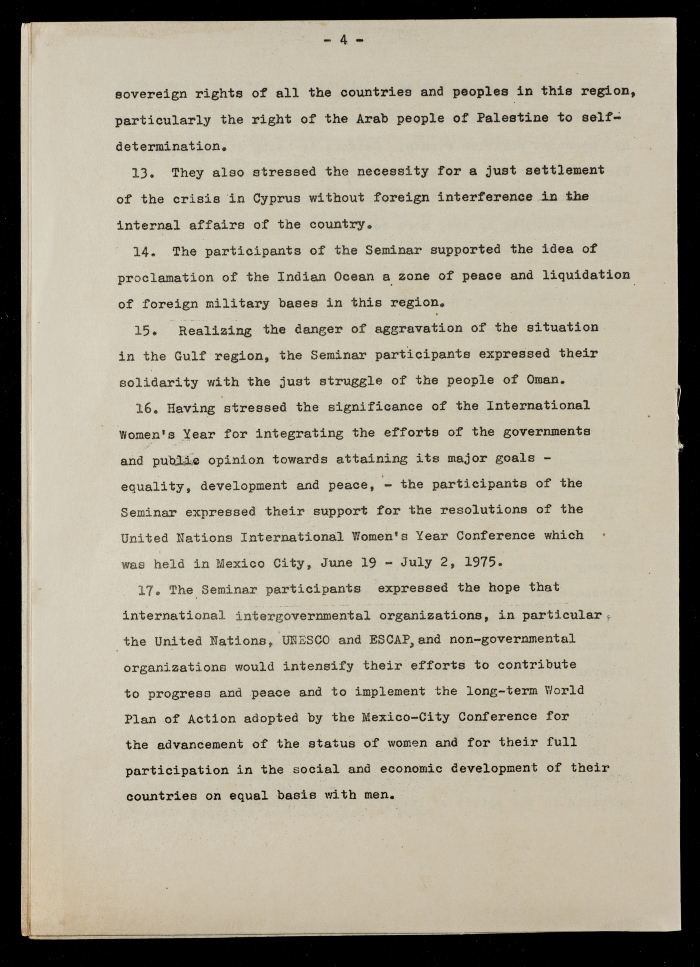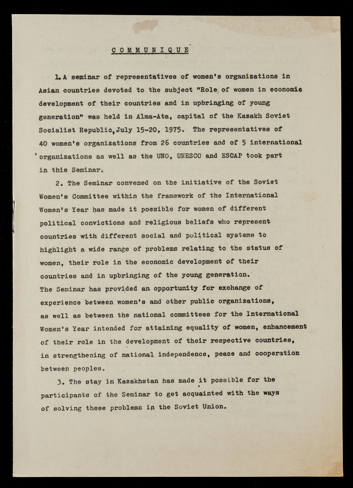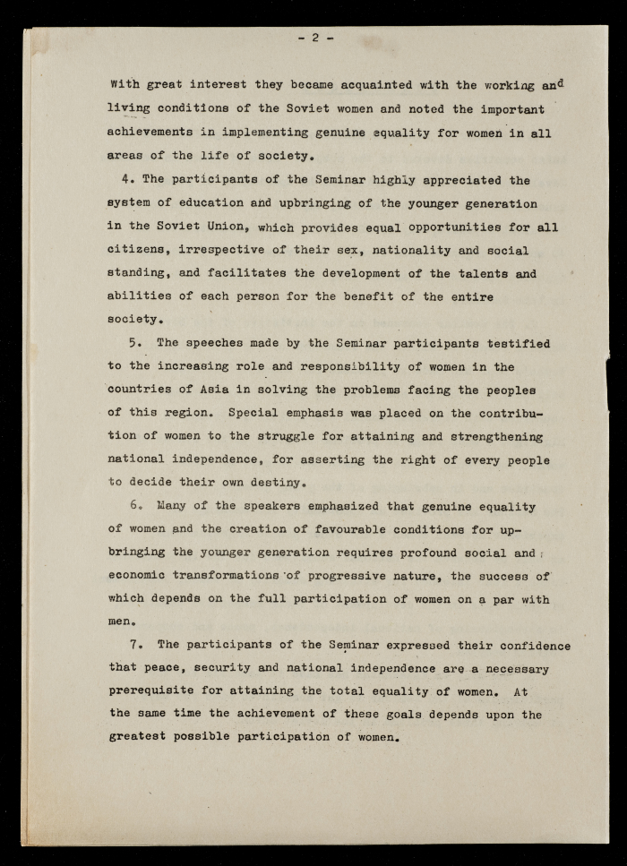 Printed in English, this document shows an article entitled "The Role of Women in Economic Development and the Education of the Younger Generation".