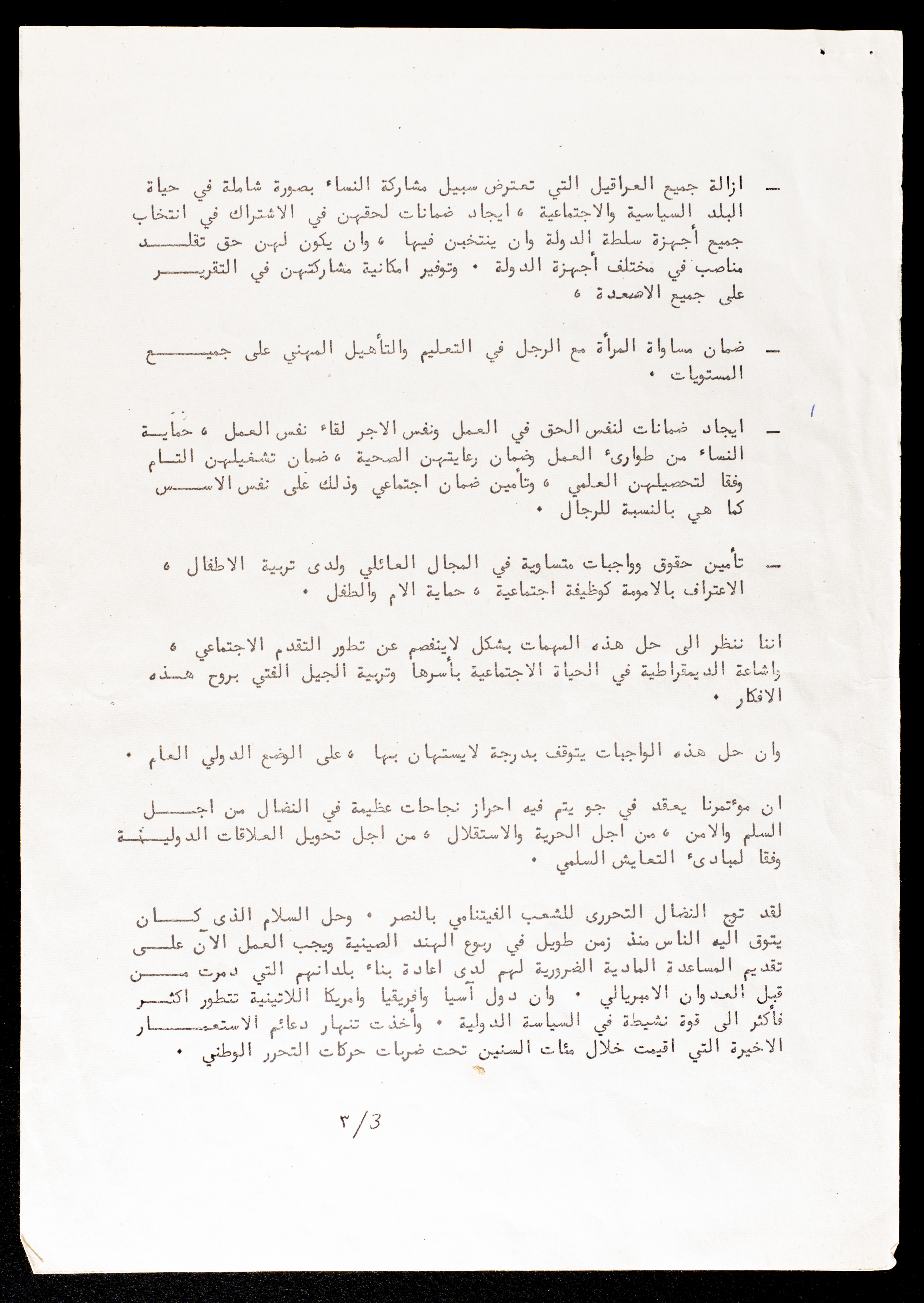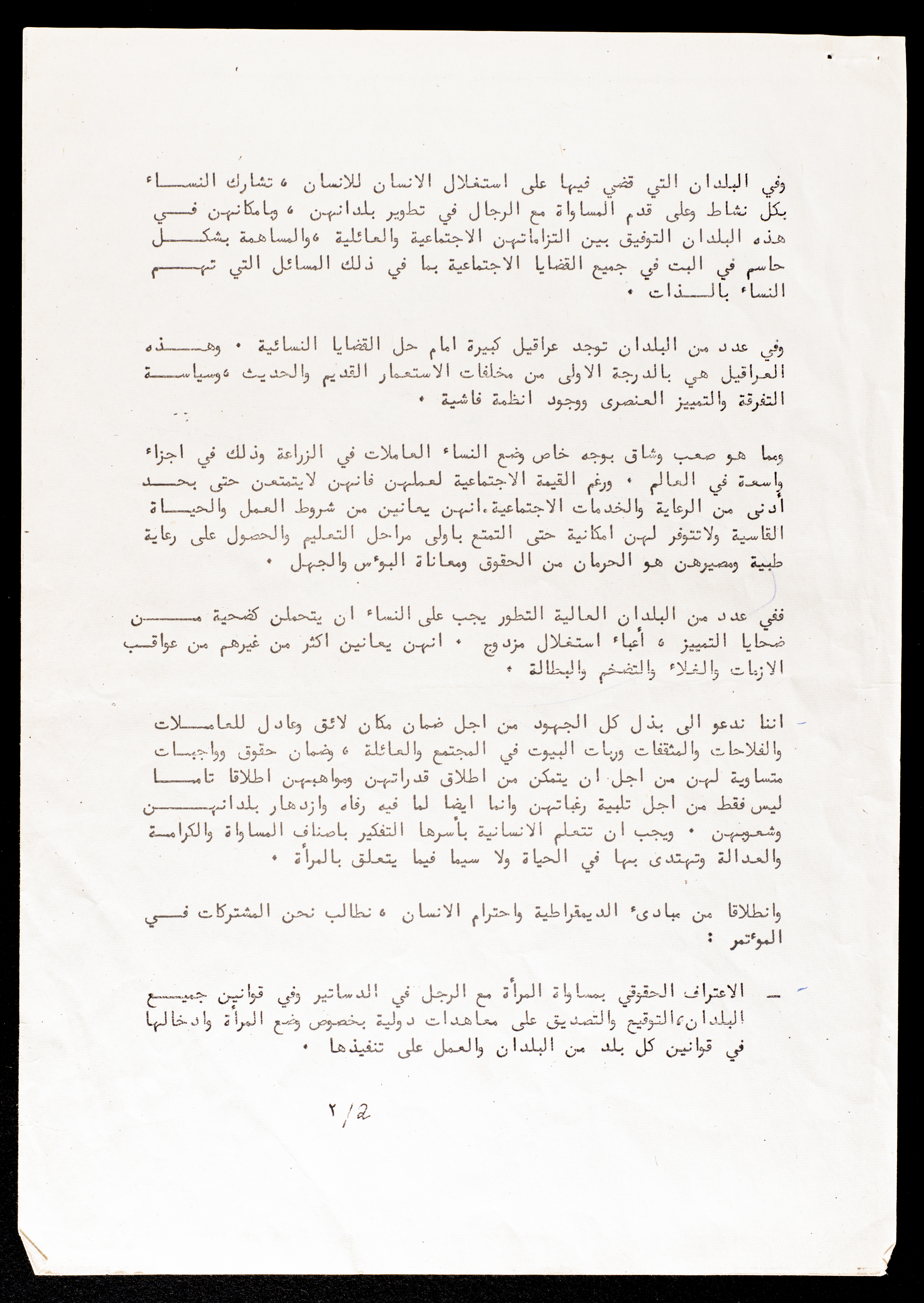 Printed in Arabic, this document shows a statement about the International Conference of the International Women's Year in Berlin, 1975.