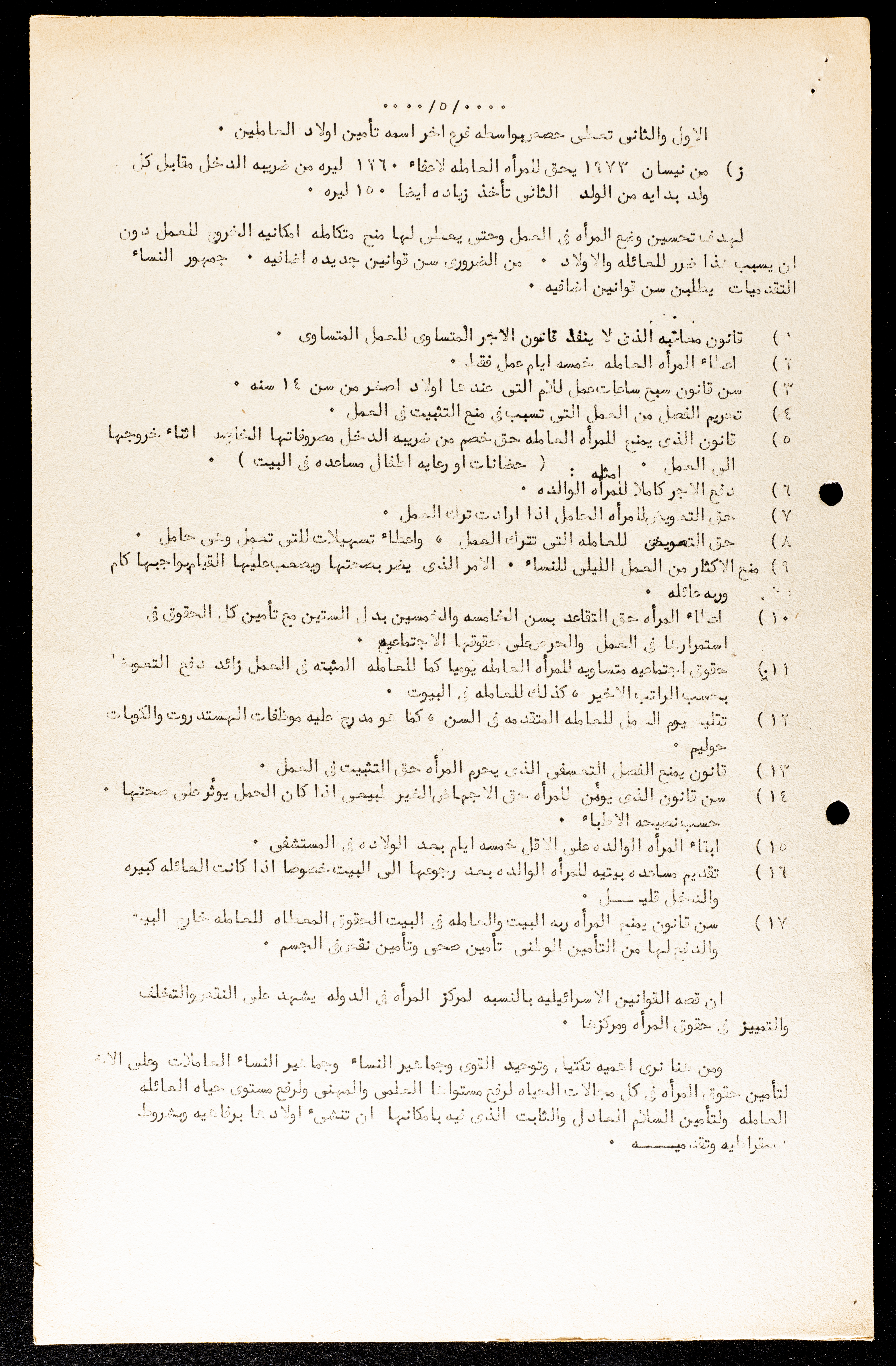 Printed in Arabic, this document shows a report on women in the Israeli Legislation.