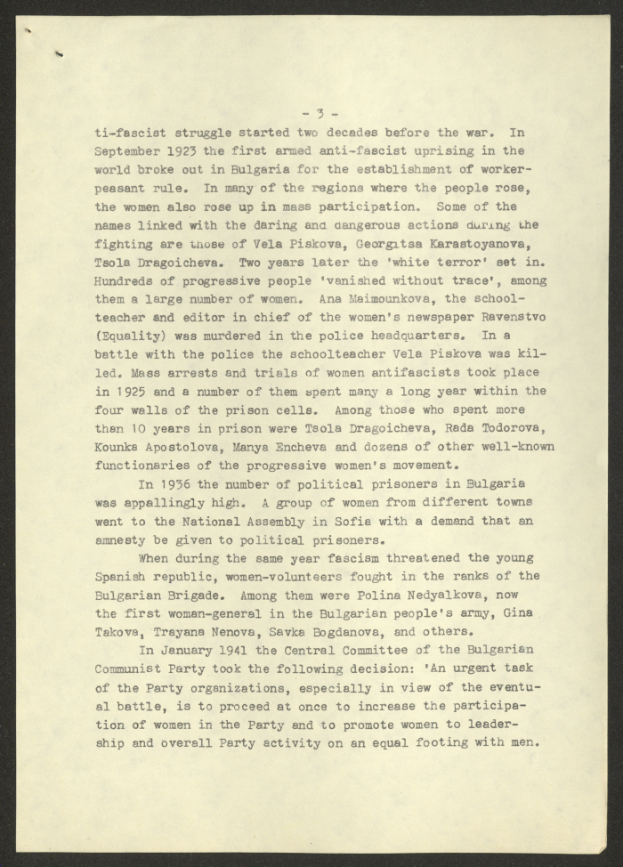 "تقربر عن "المرأة البلغارية والاتحاد النسائي الديمقراطي الدولي