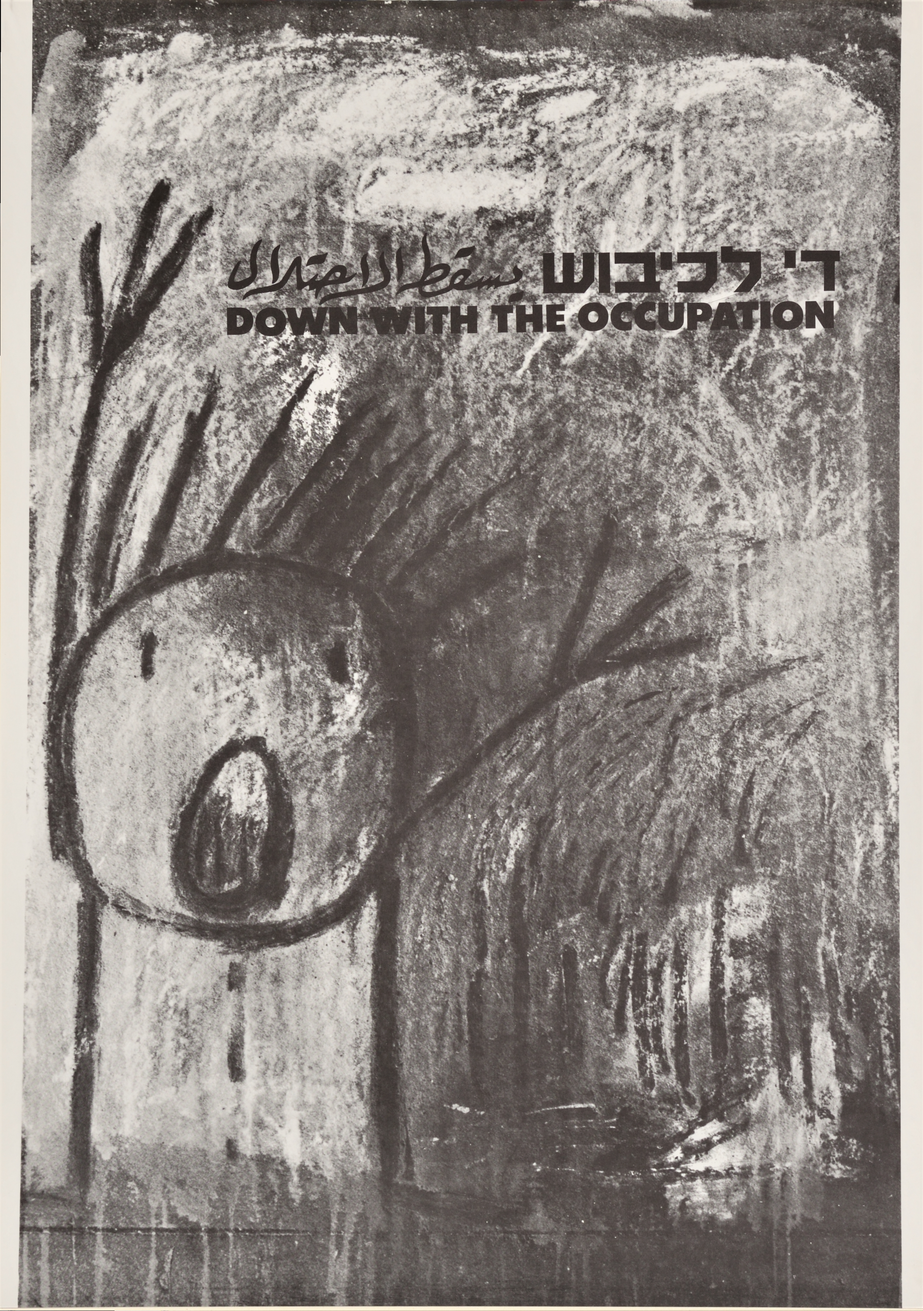 ملصق للفنان هيدفا شيمش من معرض "يسقط الإحتلال" عام 1987.