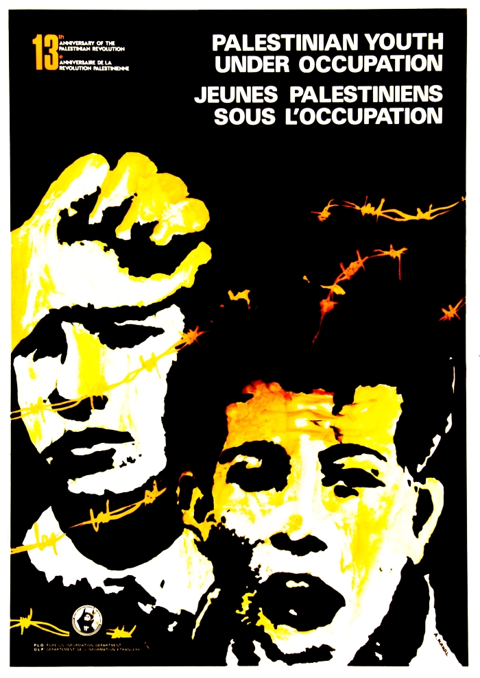 ملصق بعنوان "الشباب الفلسطيني تحت الاحتلال" صادر عن دائرة الإعلام الخارجي لمنظمة التحرير الفلسطينية عام 1978.