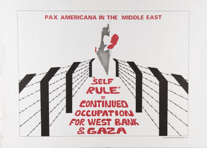 ملصق بعنوان "الحكم الذاتي" صادر عن دائرة الإعلام الخارجي لمنظمة التحرير الفلسطينية عام 1983.