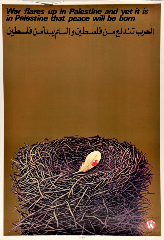 "الحرب تندلع من فلسطين والسلم يبدأ من فلسطين"، ملصق صادر عن م.ت.ف، 1982
