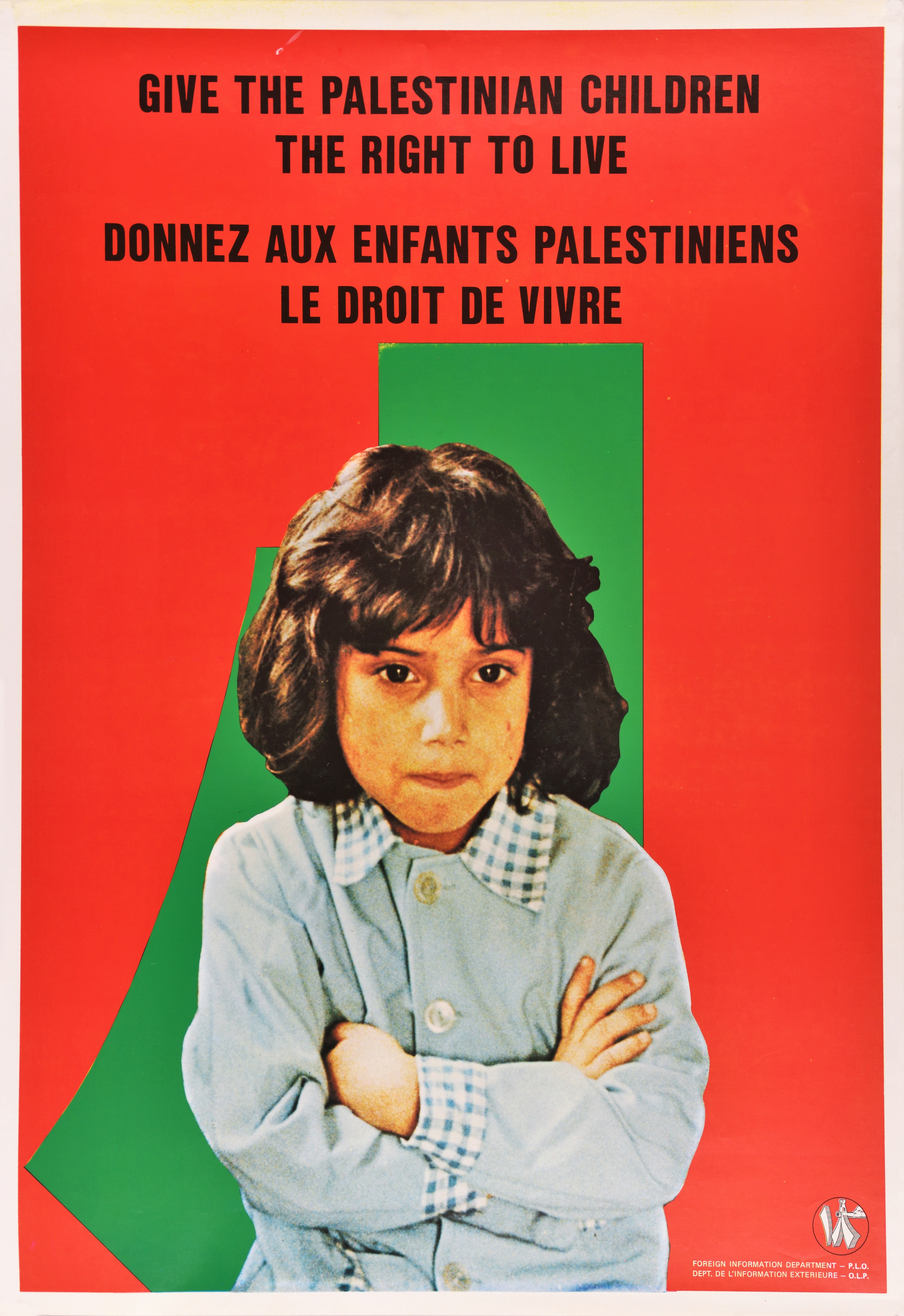 ملصق بعنوان "أعطو الطفل الفلسطيني حق الحياة" صادر عن دائرة الإعلام الخارجي لمنظمة التحرير الفلسطينية.