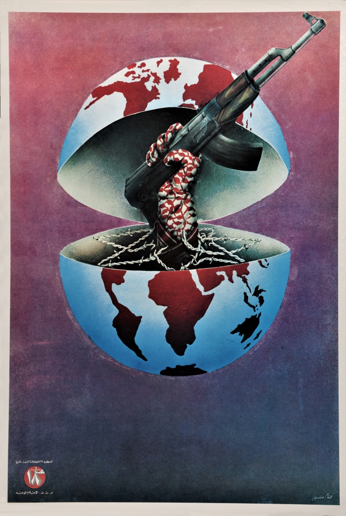 "عمل فني لهشام منصور"، ملصق صادر عن منظمة التحرير الفلسطينية، 1982