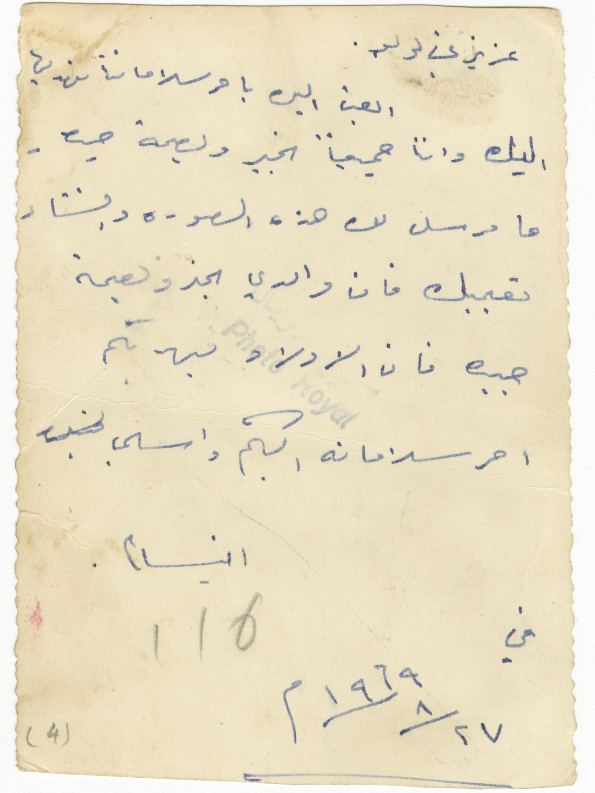 لقطة عائلة؛ يظهر فيها: رميح طه الرمحي ، زوجته ابتسام، واطفالهم: ريم ، آمال ، محمد سمر الرمحي.