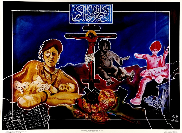 ملصق بعنوان "تقديرًا لمخيمي صبرا وشاتيلا" صادر عن مكتب منظمة التحرير الفلسطينية، ويتضمن عمل فني للفنان الفلسطيني فلادمير تماري يعود للعام 1982.
