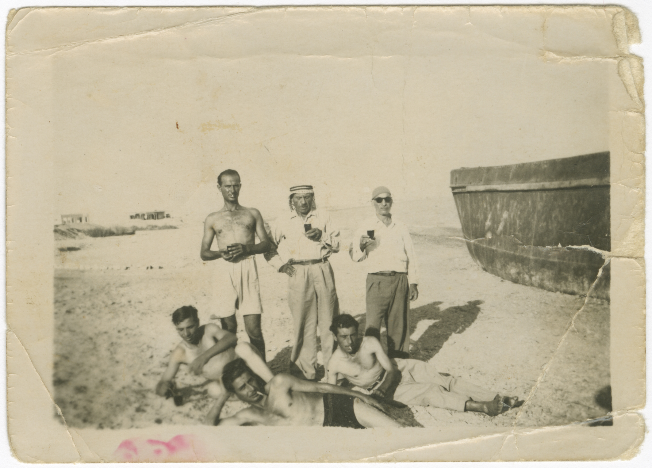 Odeh Shahén; standing in the middle, with other workers during the construction of Ling Abdullah Canal