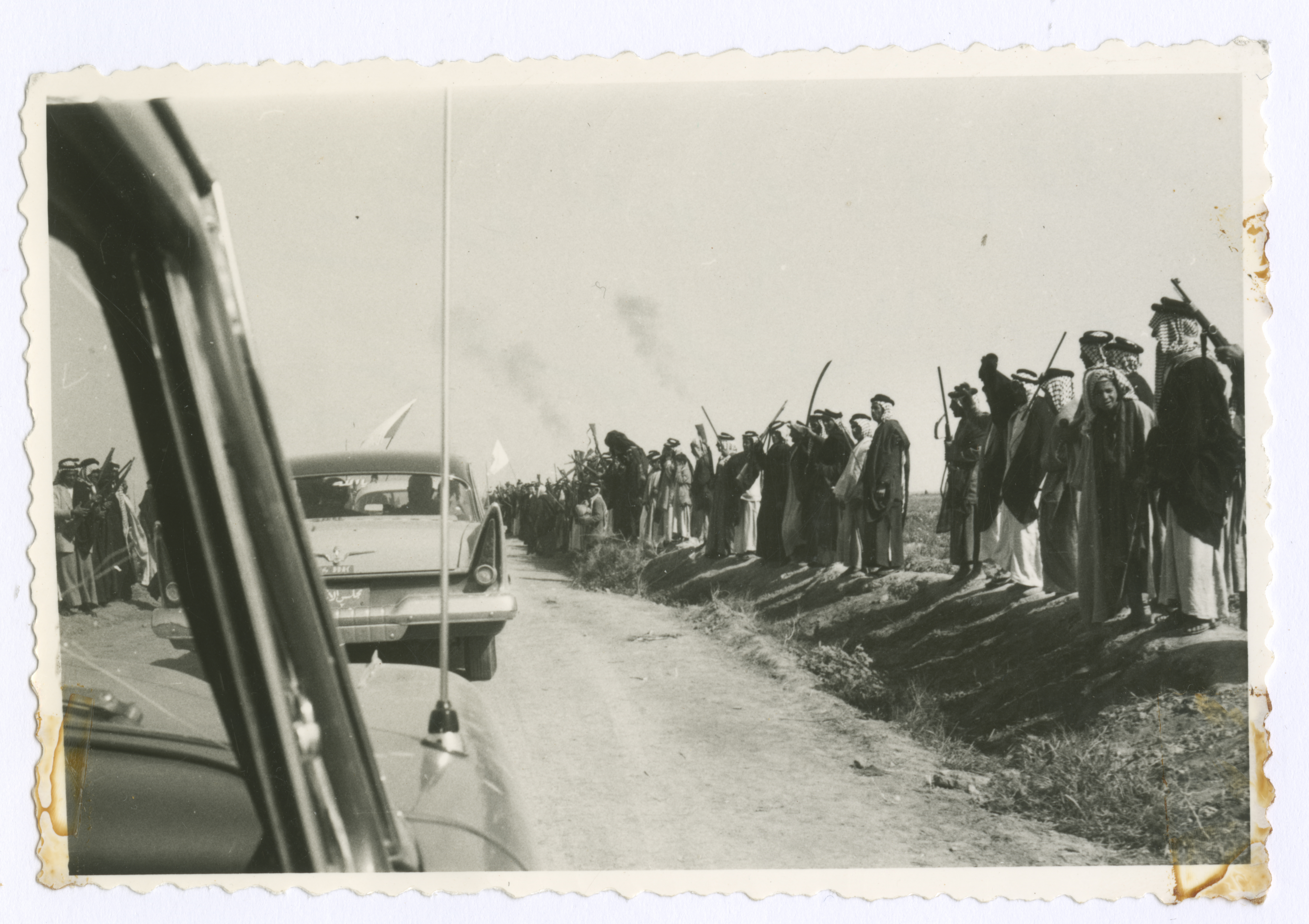 Sheikh of the Ta'amreh Family and member of the Jordanian House of Representatives; Mohammad Salem Thwaib with others on a visit to the house of Abdel-Mohsen al-Jariat