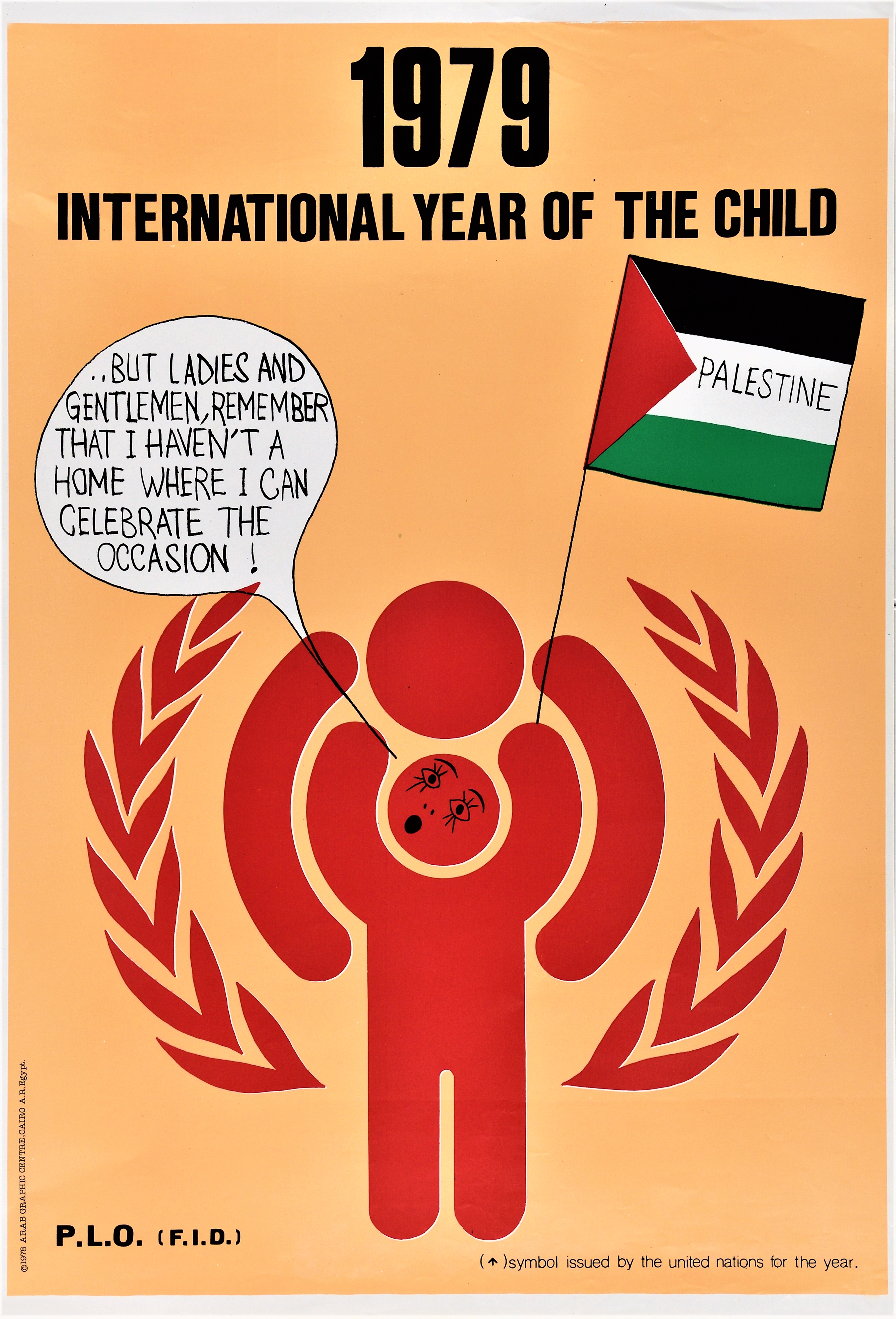 This poster titled "International Year of the Child" was issued by the Unified Information of the Palestine Liberation Organization (PLO) and includes the logo made by the United Nations for the International Year of the Child in 1979.