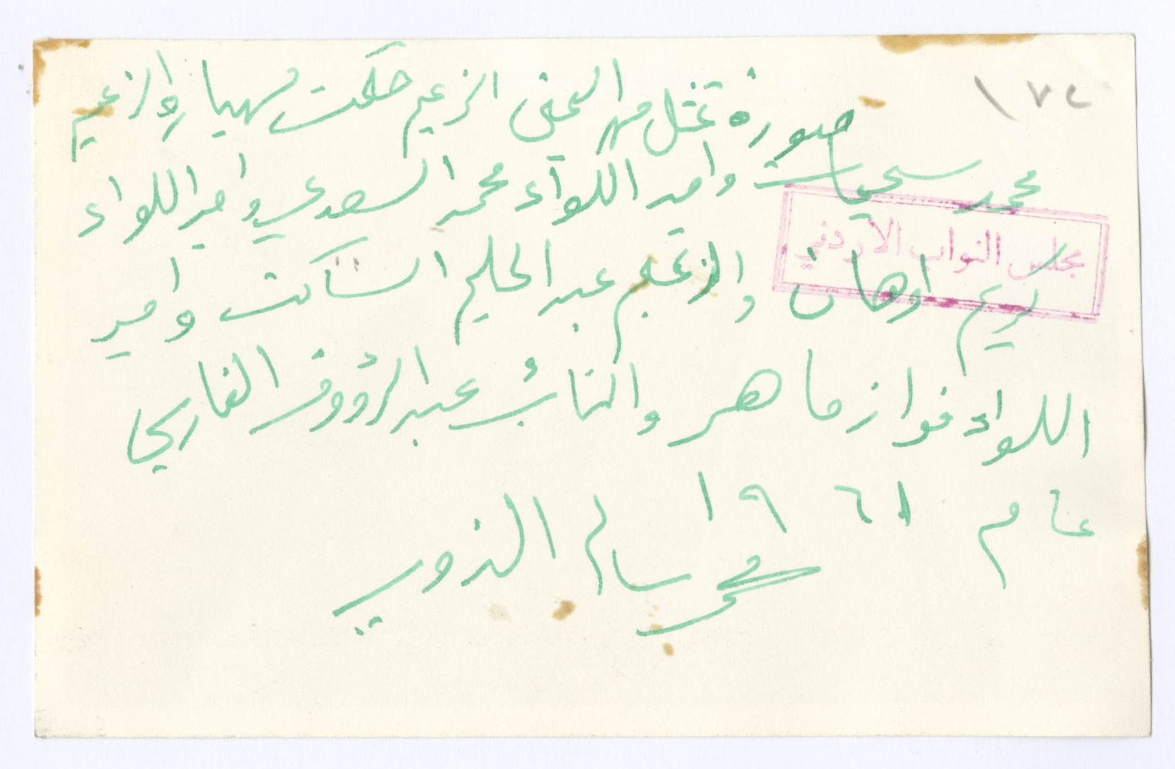 لقطة لعدد من الشخصيات الاعتبارية، وقد عُرف منهم: حكمت مهيار، محمد السعدي، كريم اوهان، عبد الحليم الساكت، فواز ماهر، عبد الرؤوف الفارسي