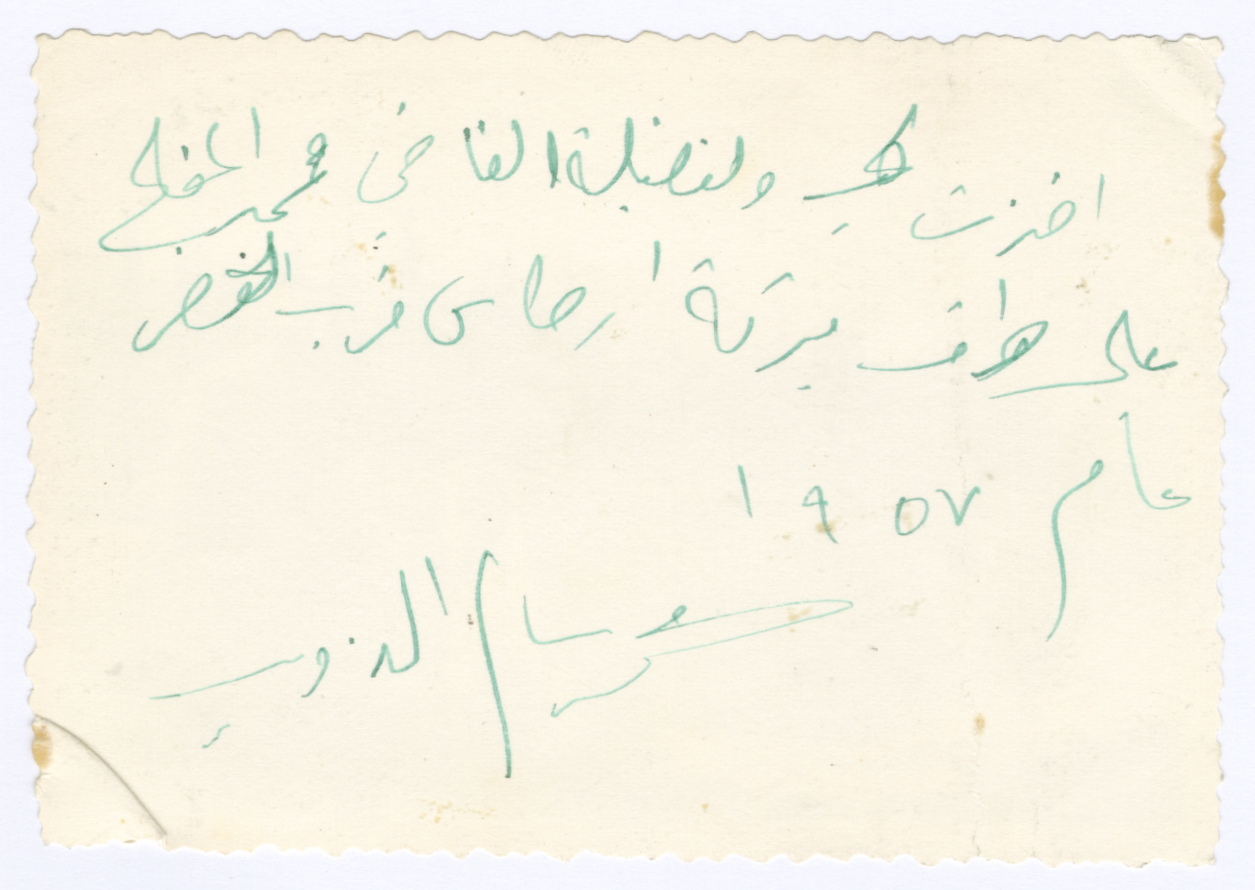 A portrait of men near Artas Pools, Bethlehem. Mohammad al-Mifleh; Judge of Bethlehem (right), with Mohammad Salem Thwaib; Sheikh of the Ta'amreh Family and member of the Jordanian House of Representatives