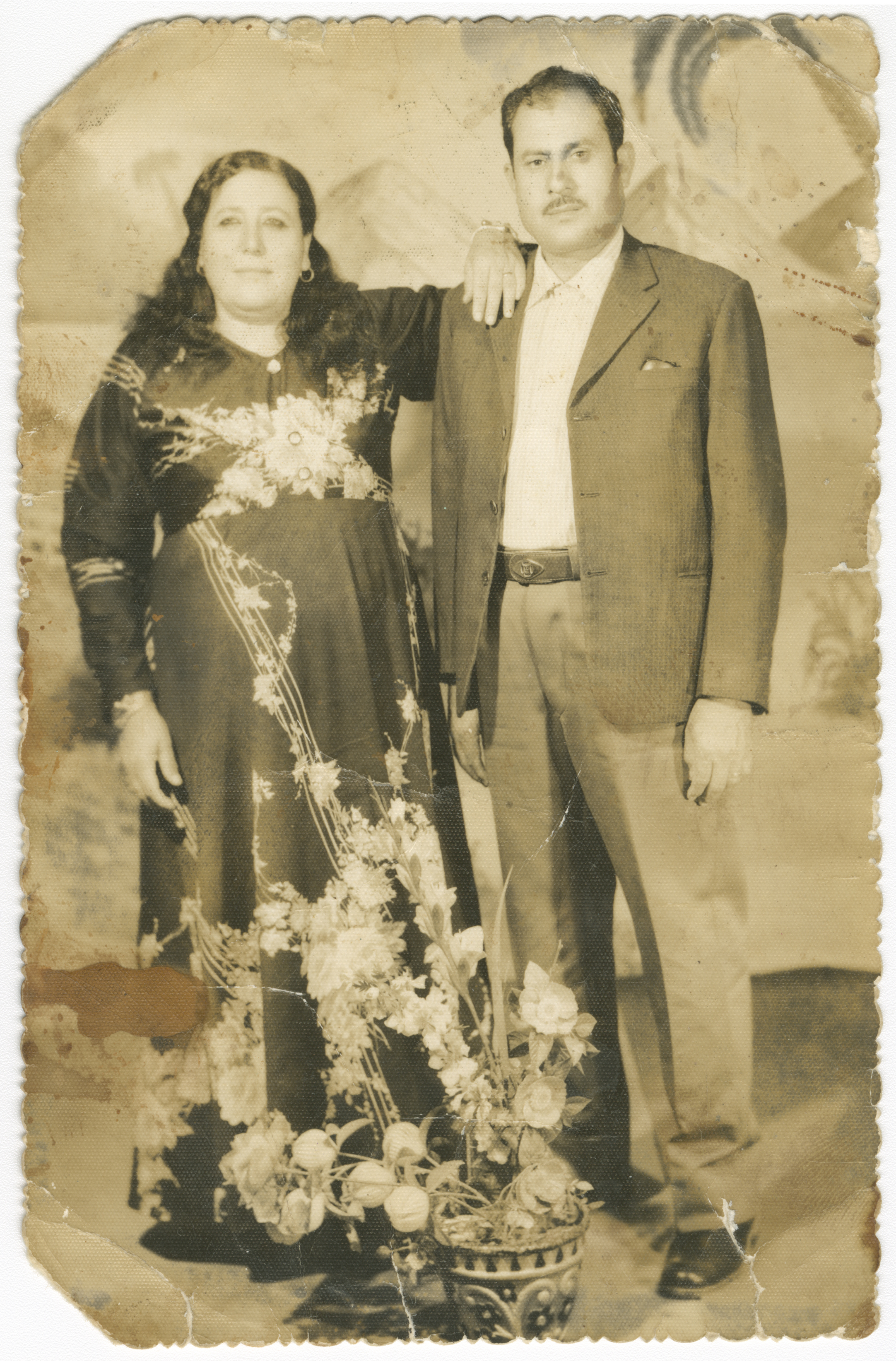 اسماعيل حنضلة من بلدة الطيرة في الداخل الفلسطيني وزوجته، أثناء عمله في الكويت