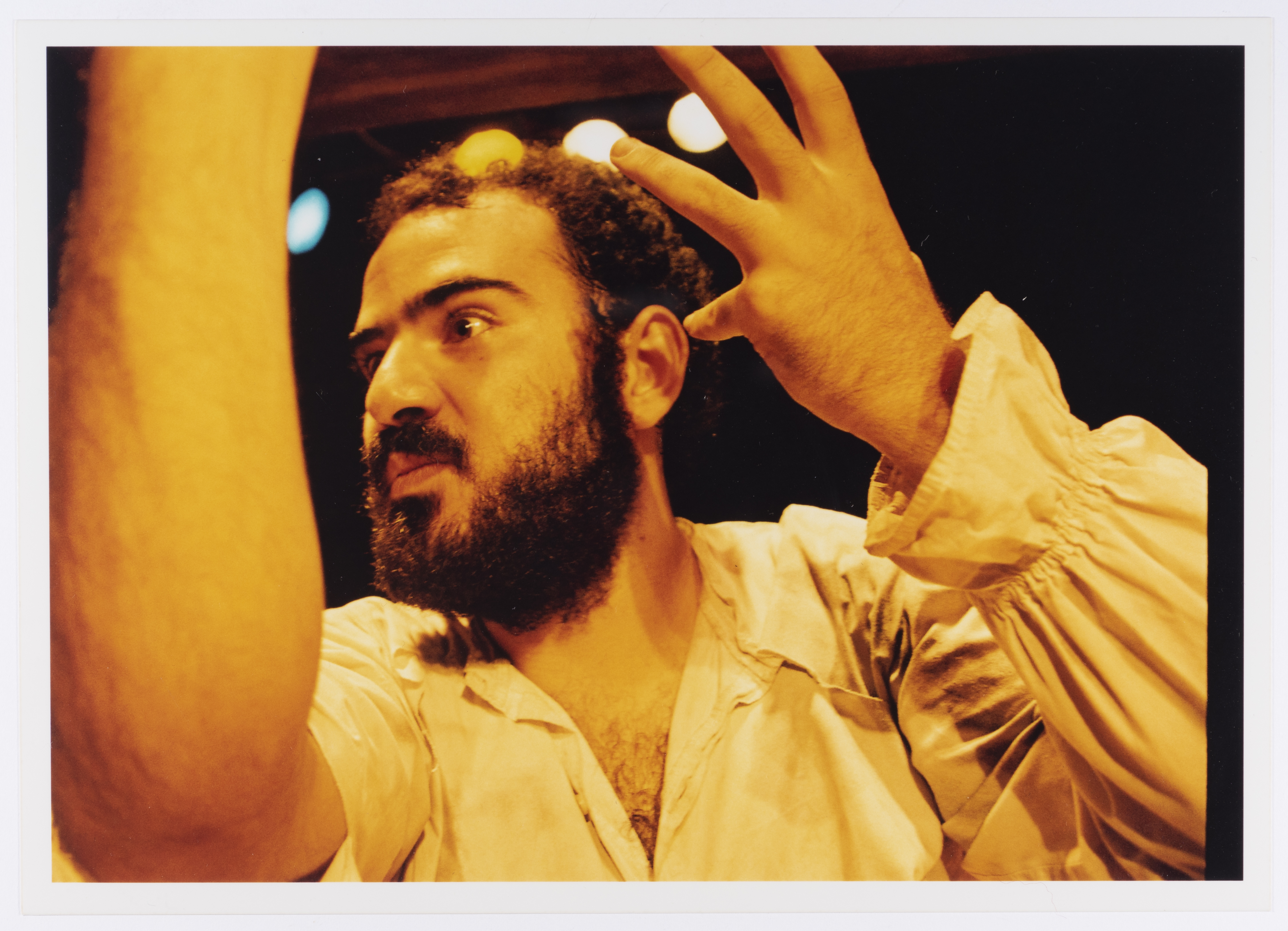 صورة لعامر حليحل خلال أداء مسرحية "دياب"