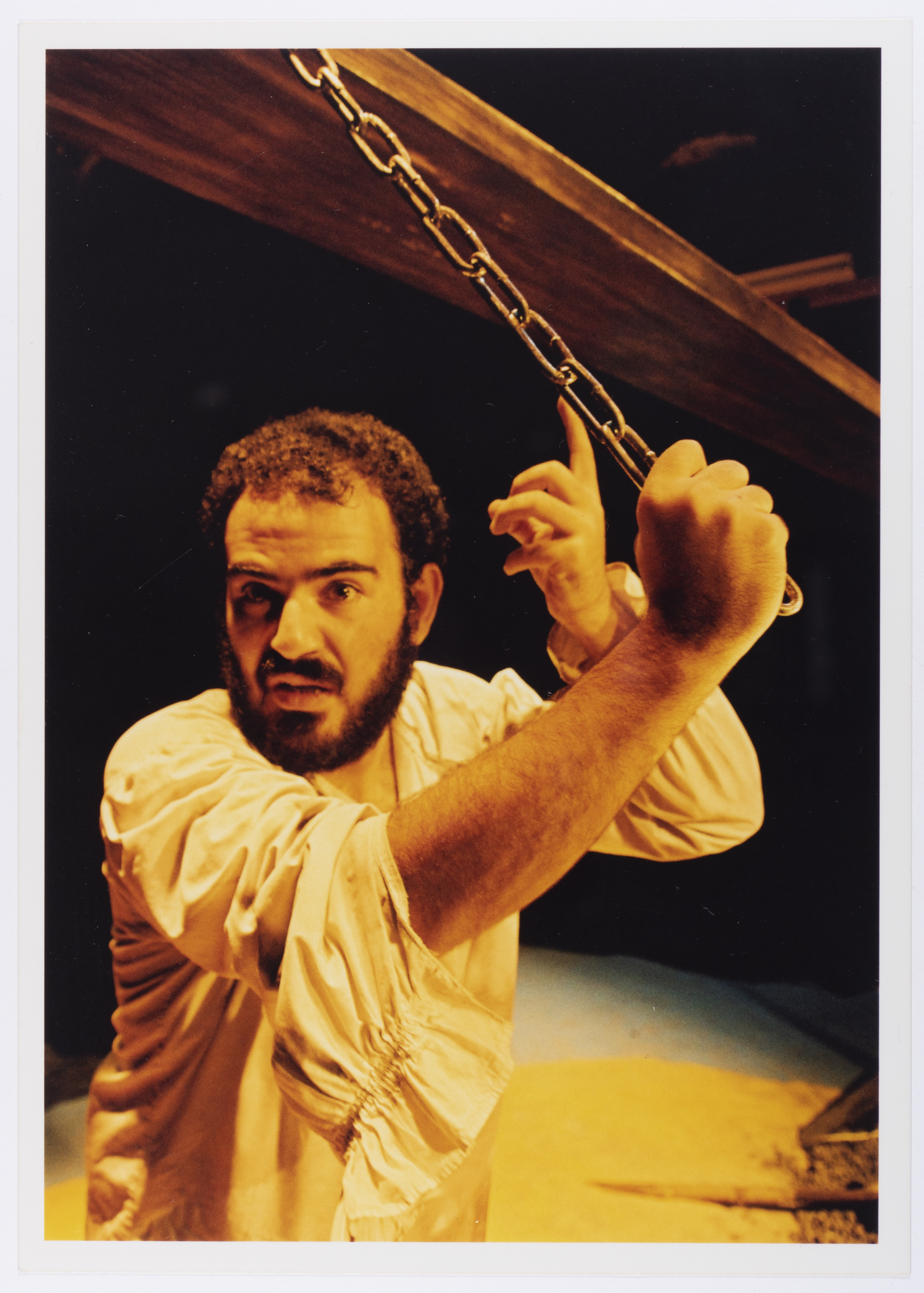 صورة لعامر حليحل خلال أداء مسرحية "دياب"
