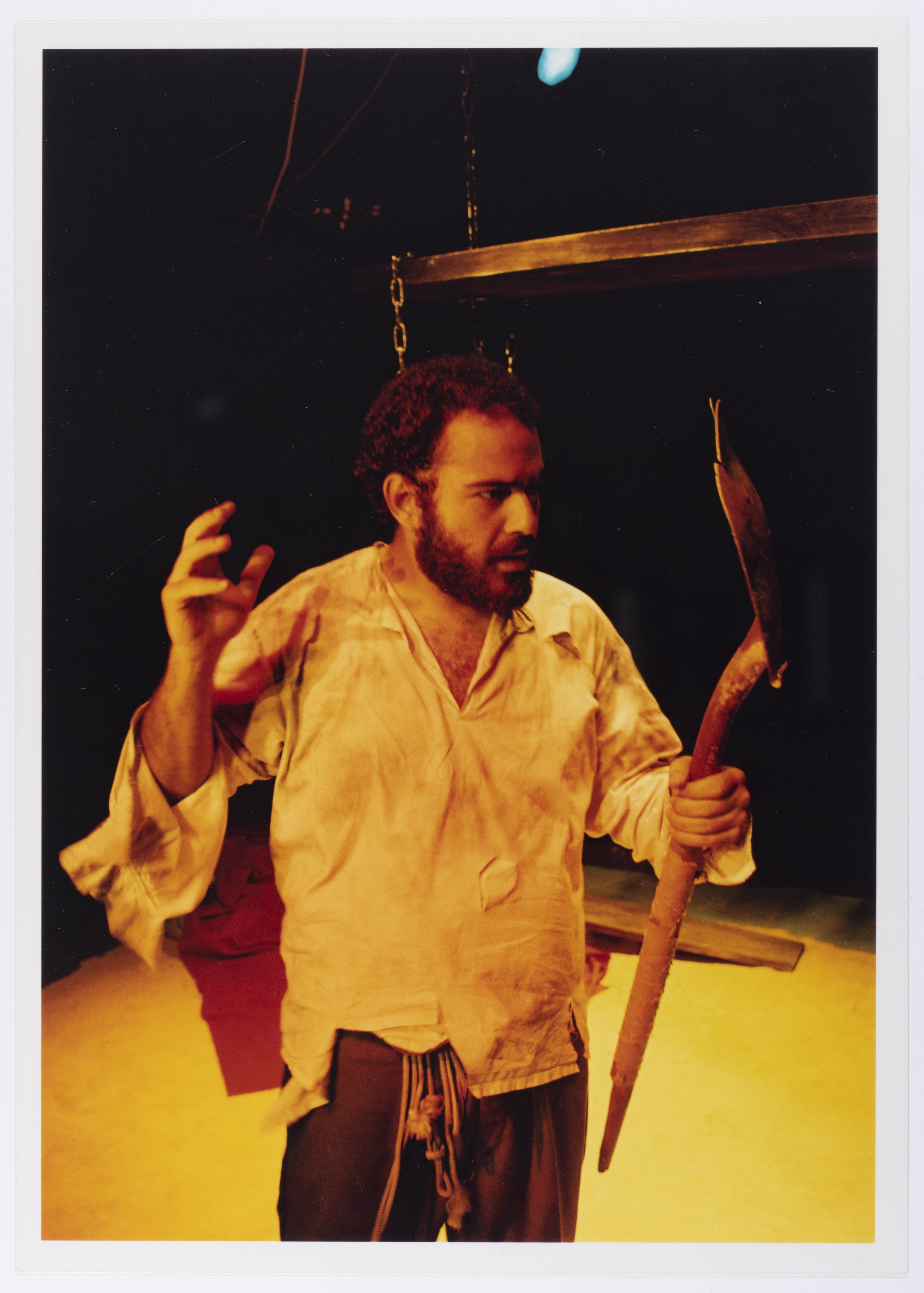 صورة لعامر حليحل خلال أداء مسرحية "دياب"