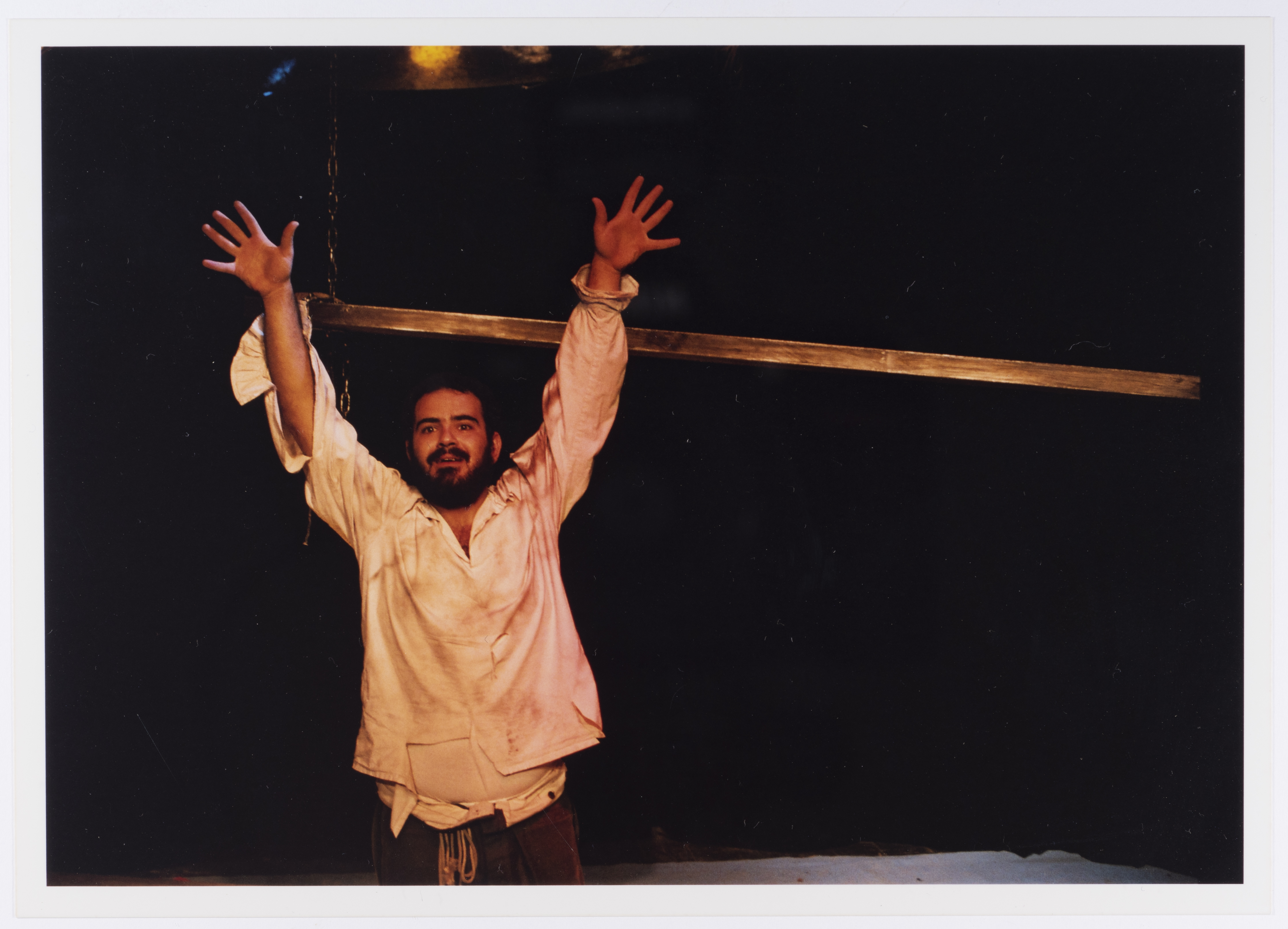 صورة لعامر حليحل خلال أداء مسرحية "دياب"