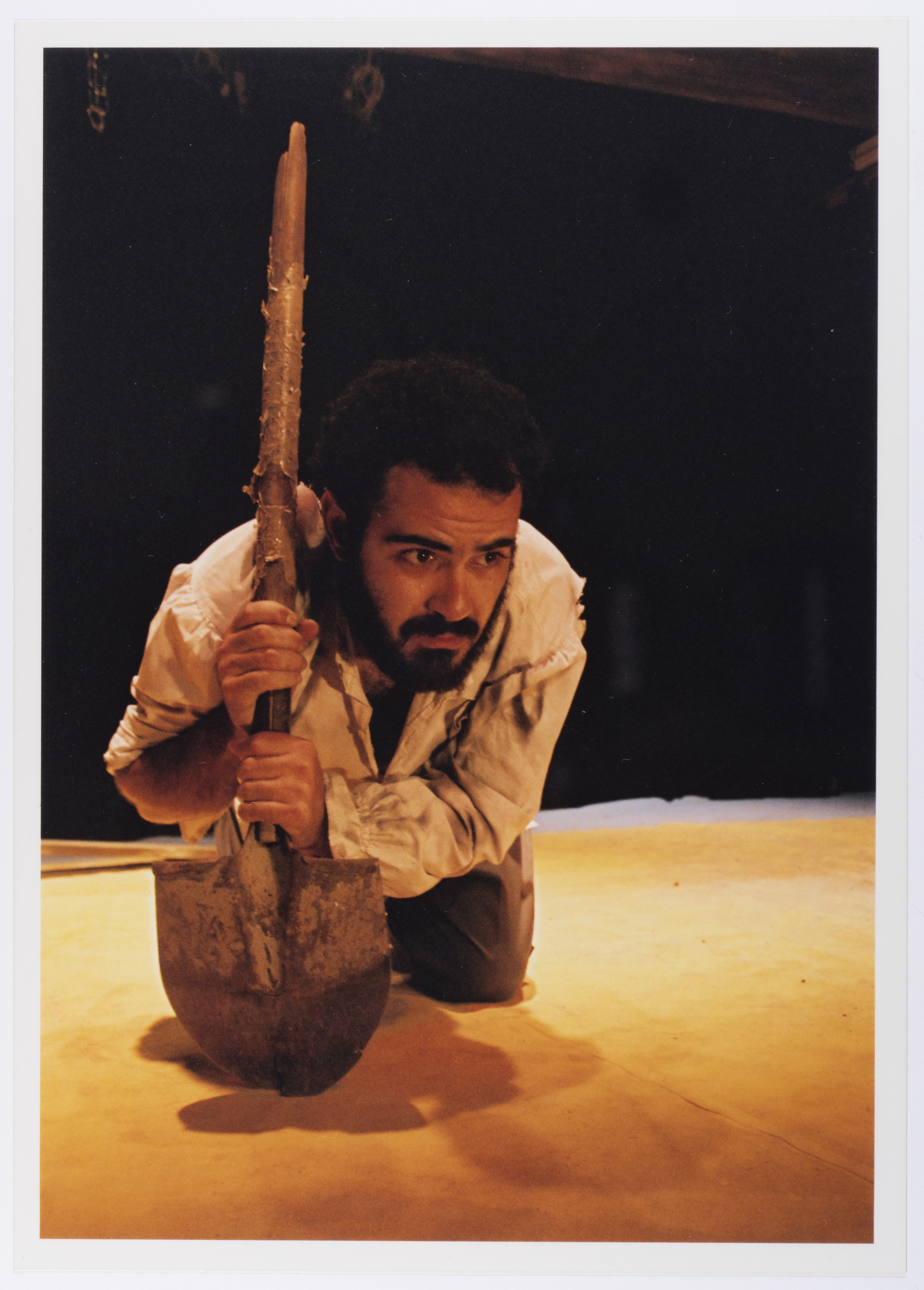 صورة لعامر حليحل خلال أداء مسرحية "دياب"