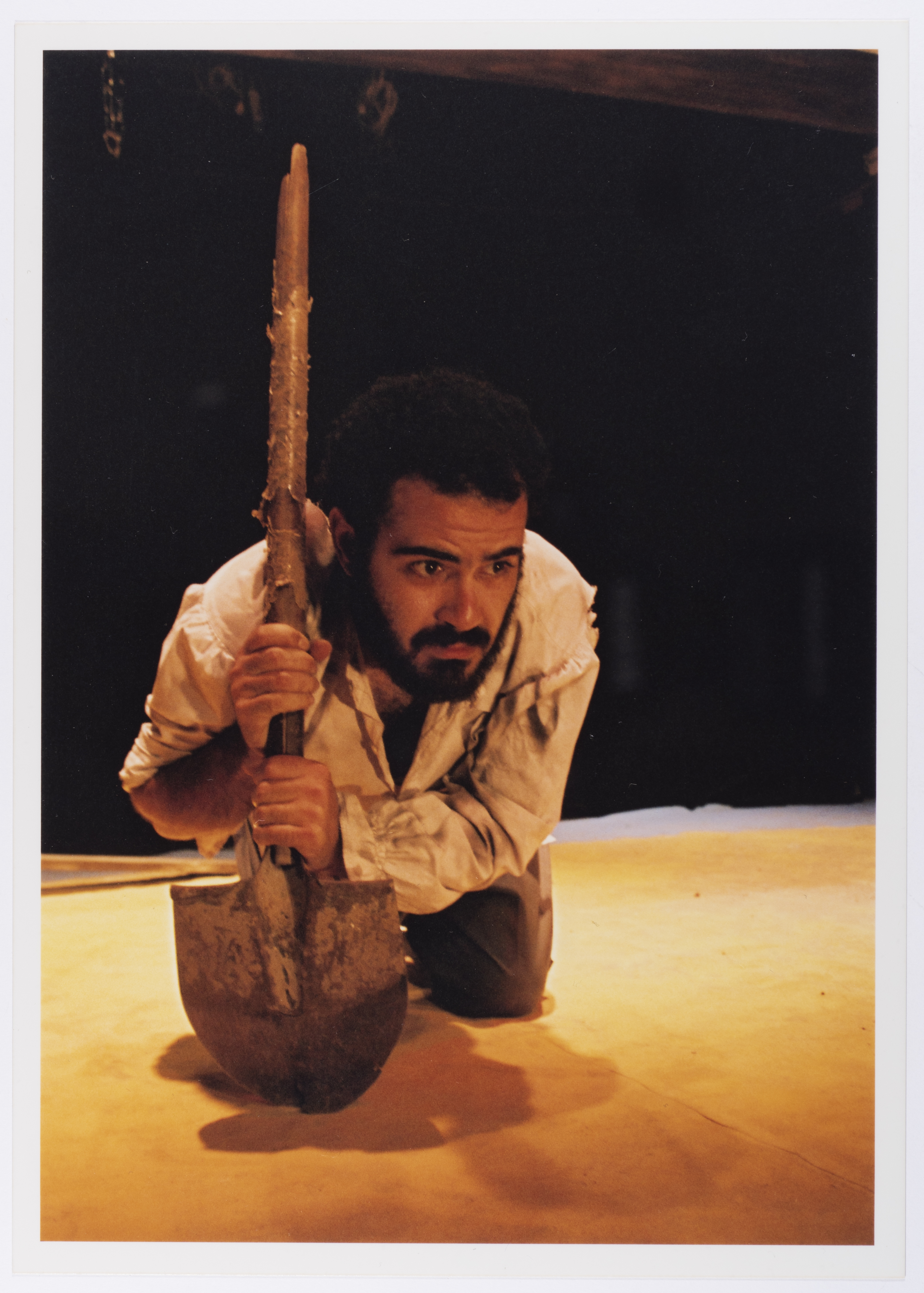 صورة لعامر حليحل خلال أداء مسرحية "دياب"