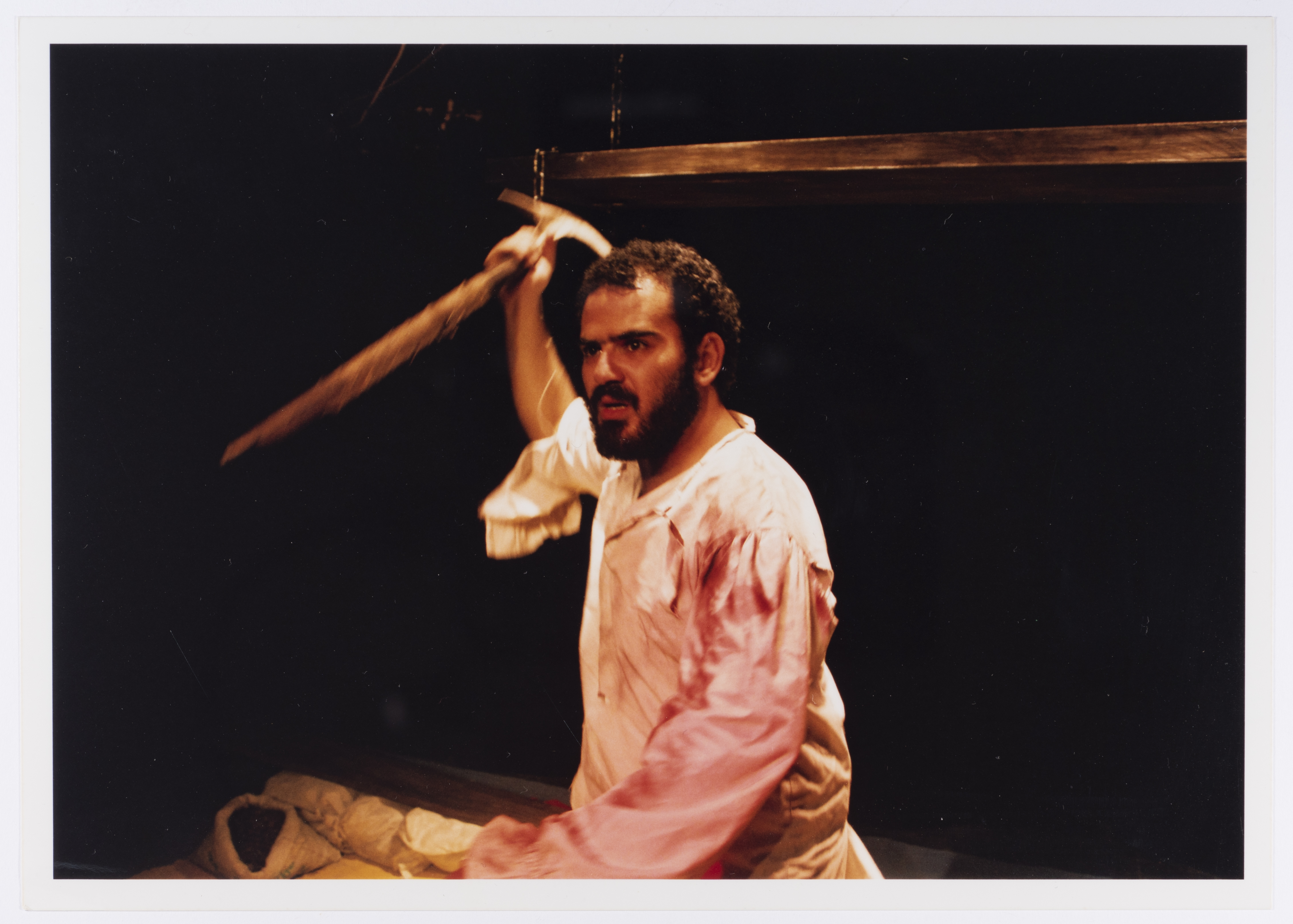 صورة لعامر حليحل خلال أداء مسرحية "دياب"