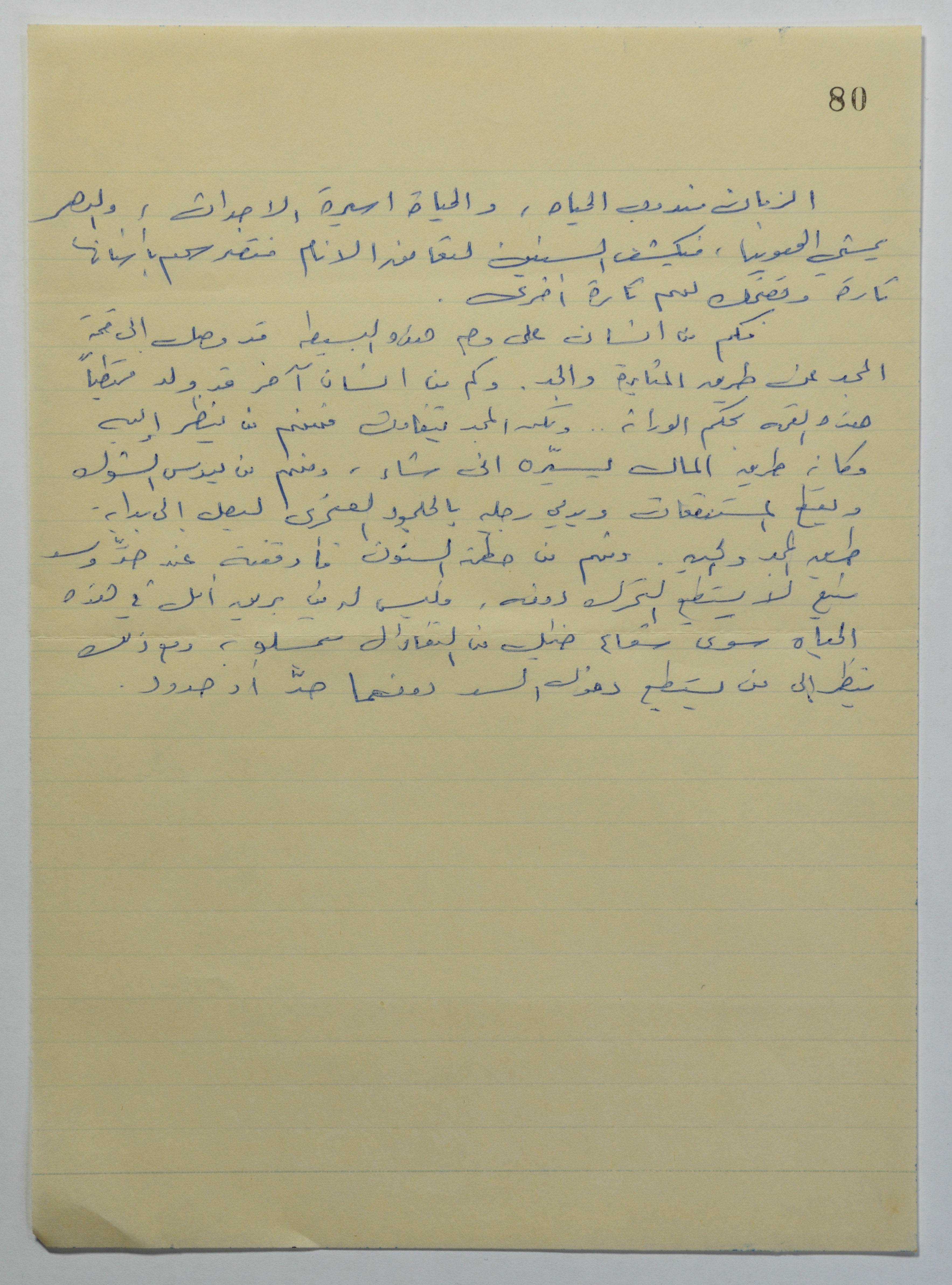 Written in the 1980s, this document shows a prose text by Omar al-Qasim while he was imprisoned about life and humanity.