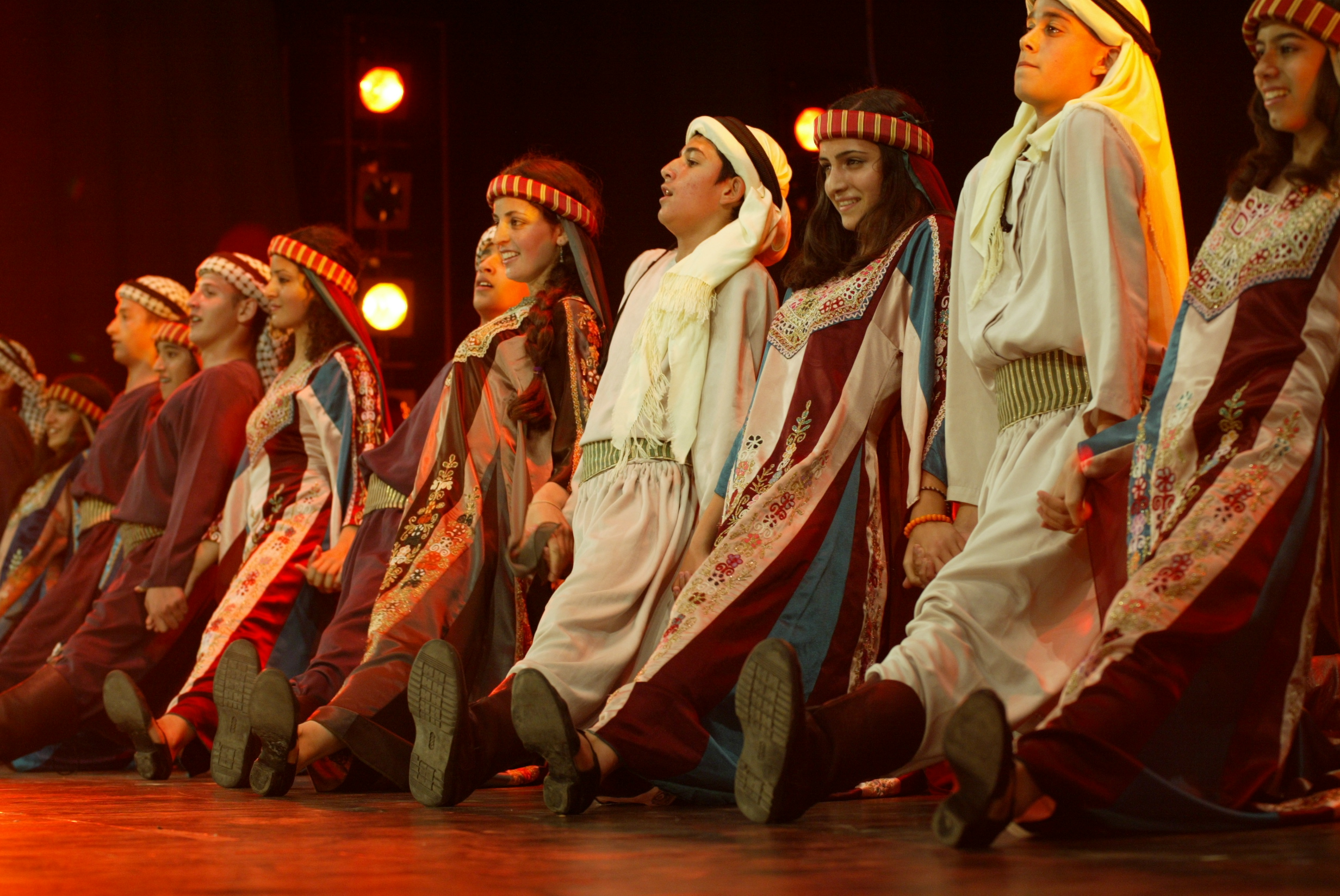 Taken in 2014, this colour photograph captures a glimpse of el-Funoun Palestinian Popular Dance Troupe's silver jubilee event at the Ramallah Cultural Palace.