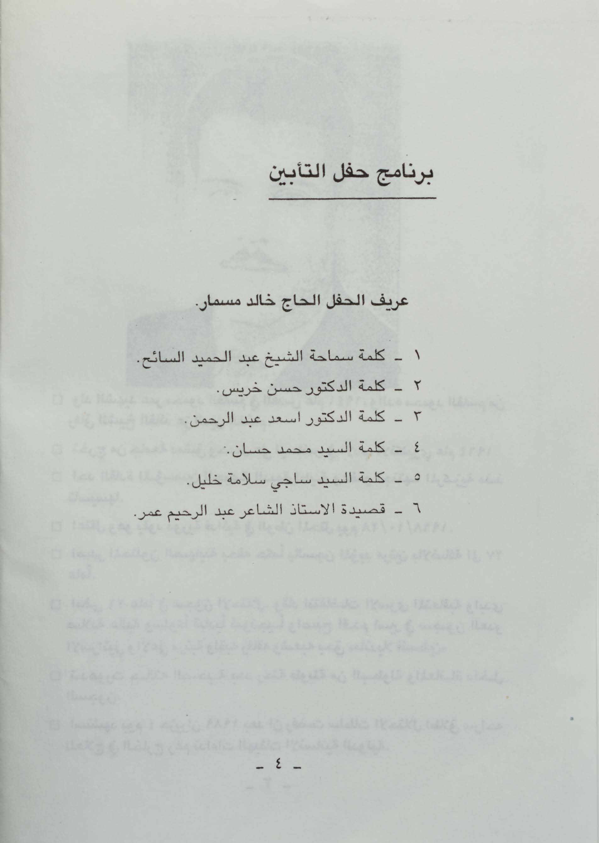 The Memorial Service Program of the Shaheed Omar al-Qasim, Amman, 22 July 1990