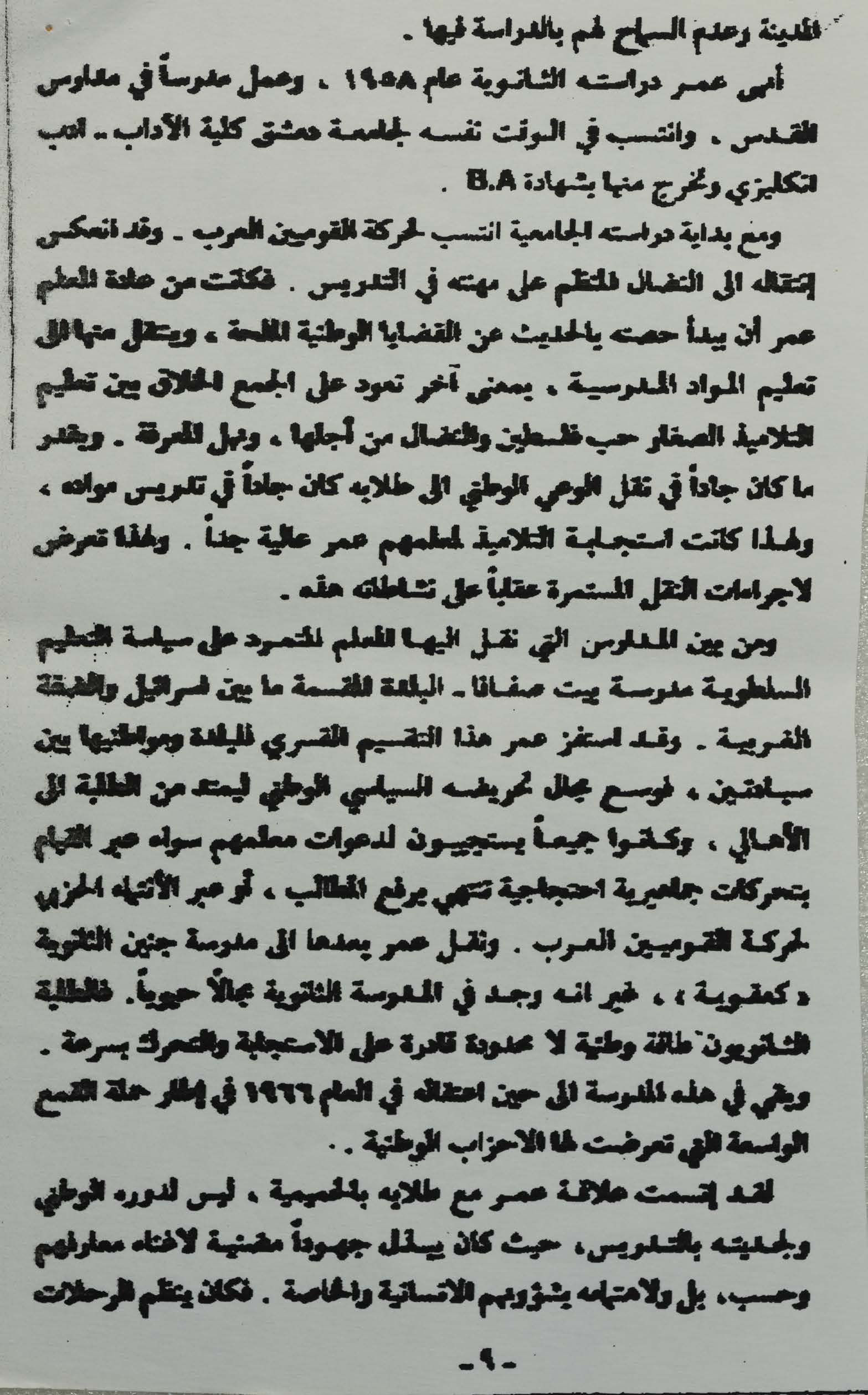 وثيقة تعدُّ شرحًا مفصّلًا لمسيرة حياة الشهيد عمر القاسم من الولادة حتى الاستشهاد.