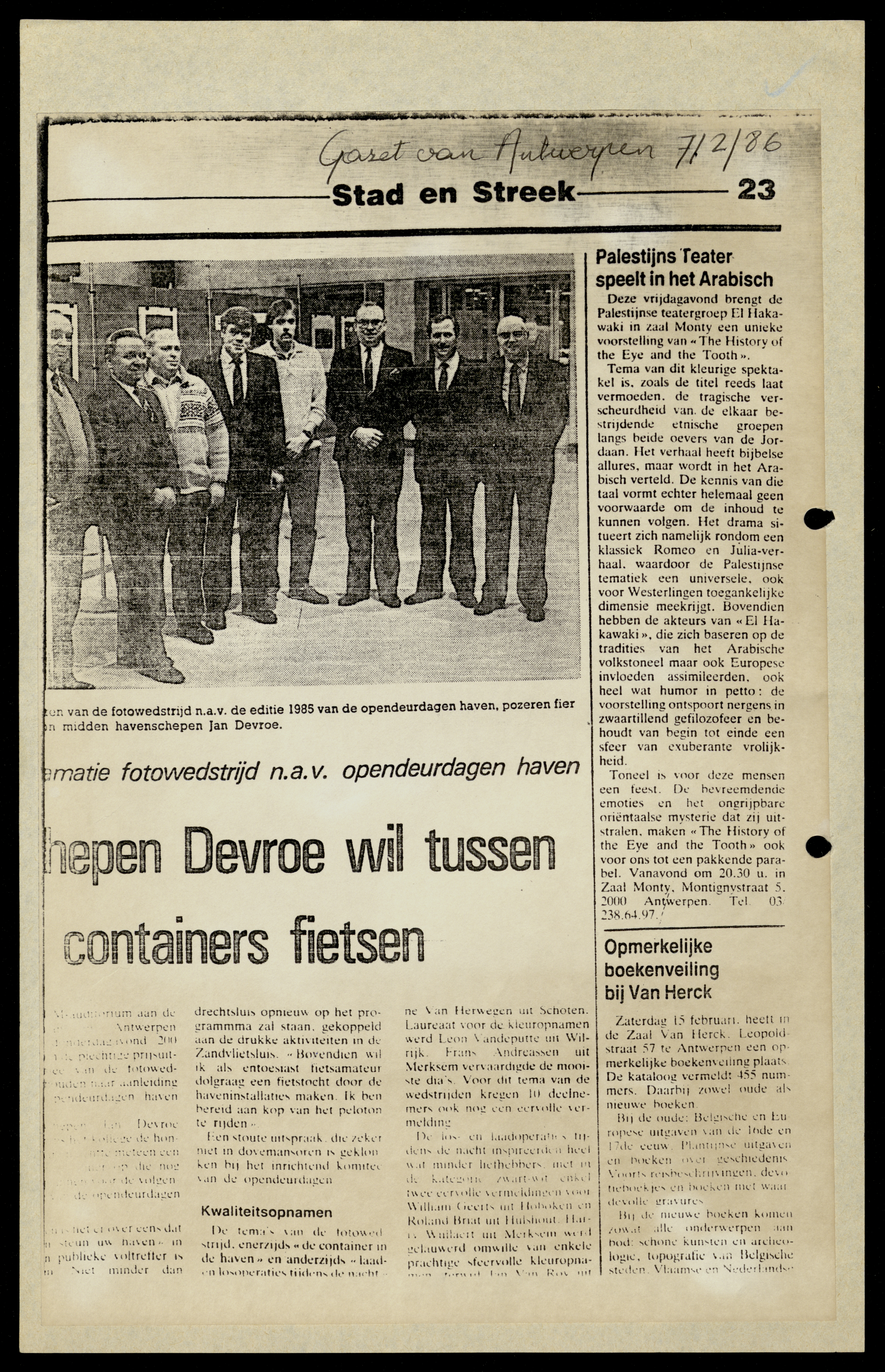 A Newspaper Clipping from Gazet van Antwerpen, 7 February 1986