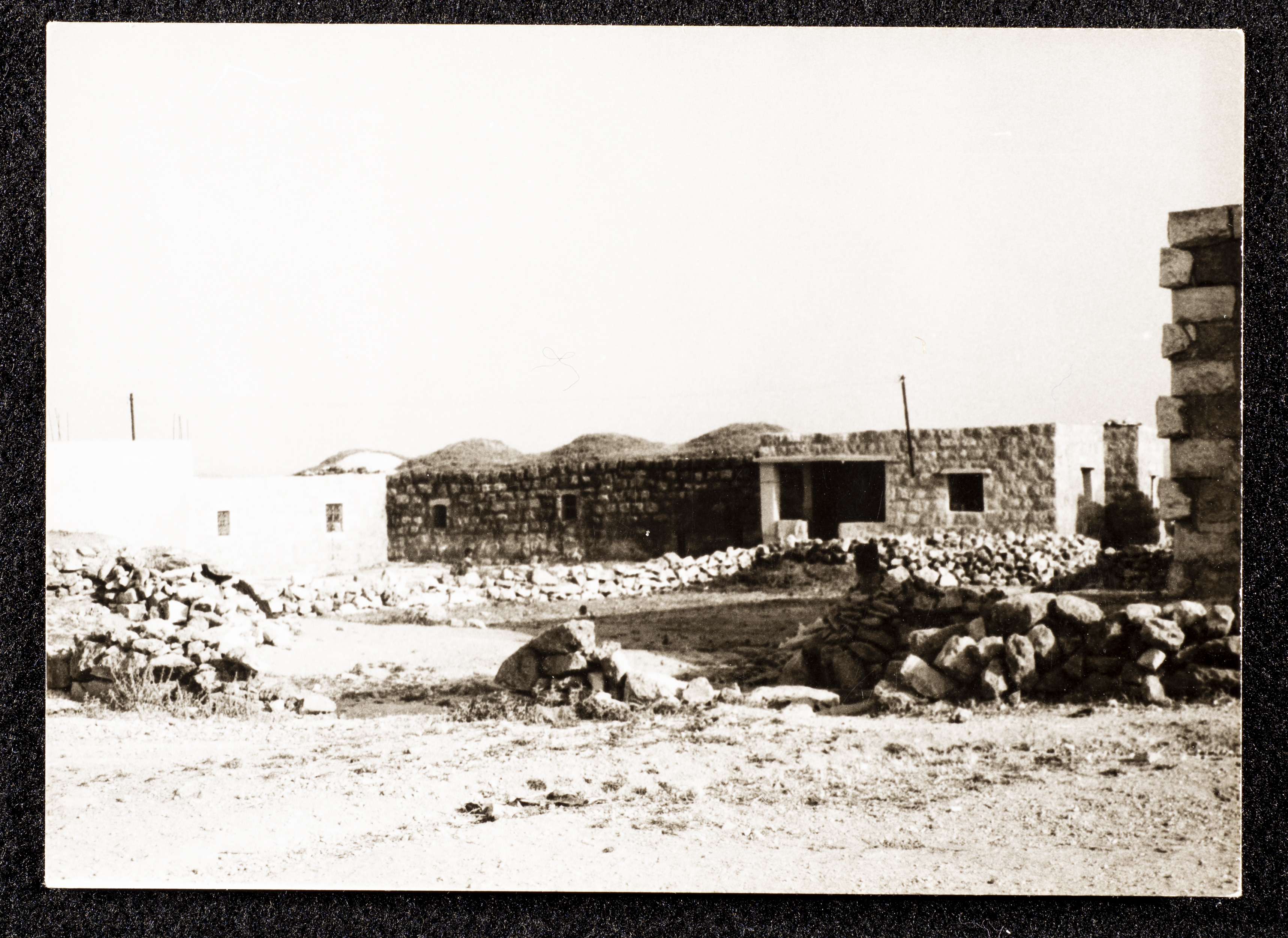 This black-and-white photograph captures a glimpse of the village of Dayr Ghassana.